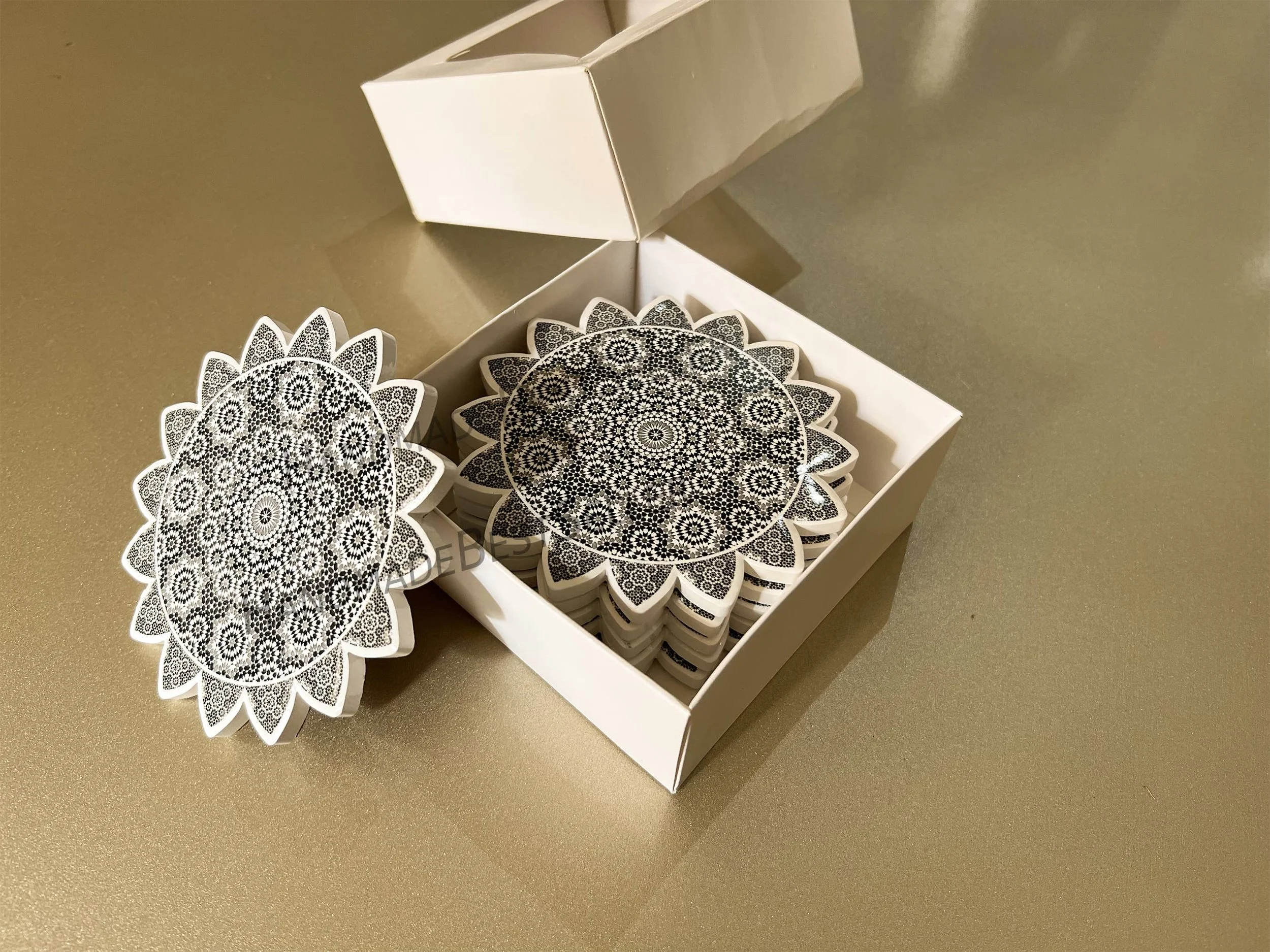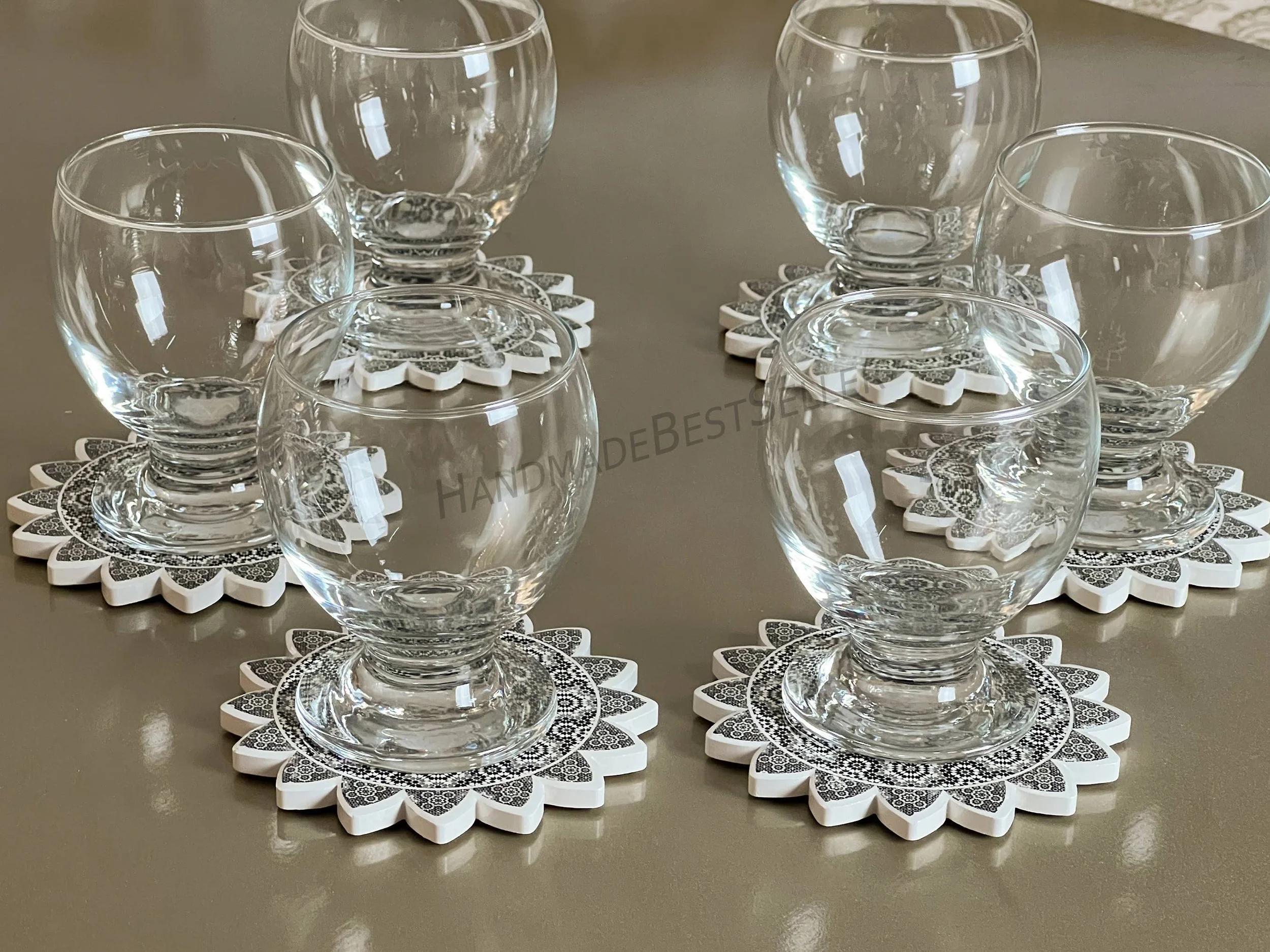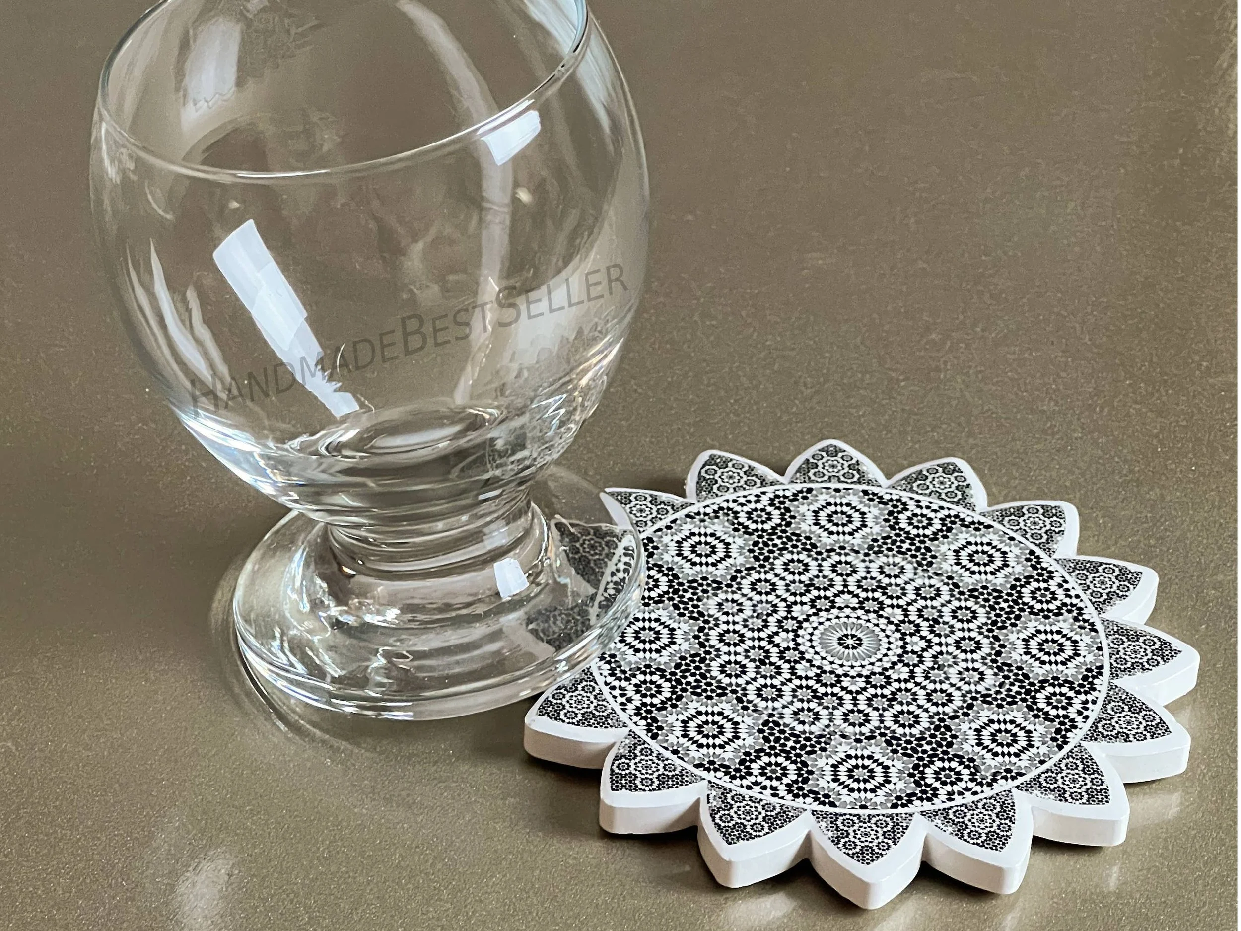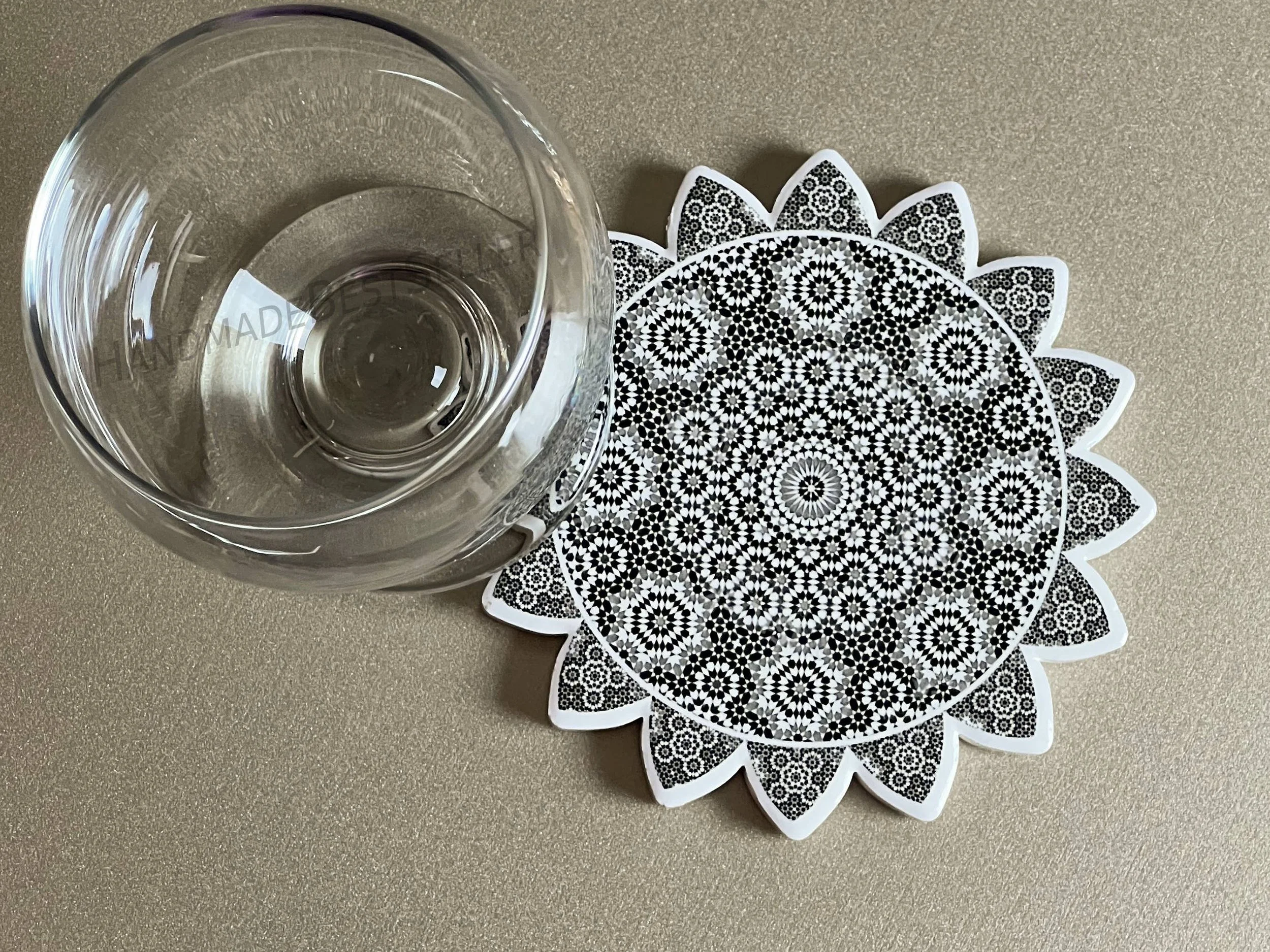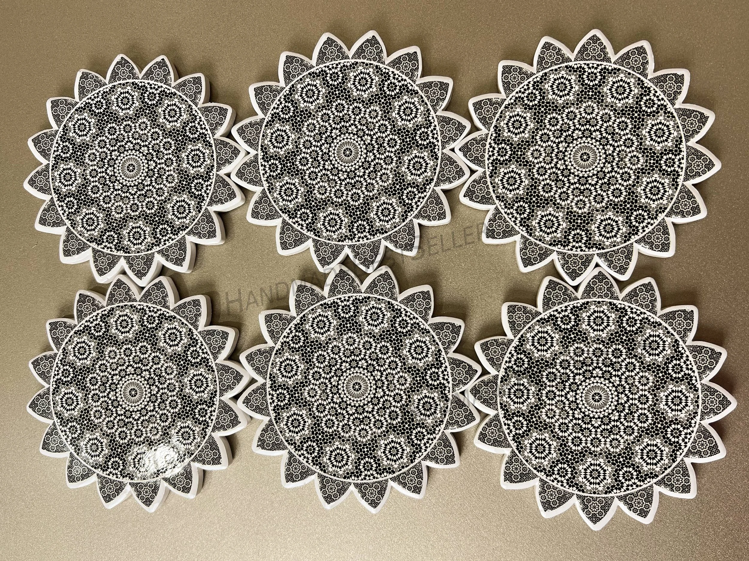 Set of 6 Ceramic COASTERS, Colorful Moroccan design