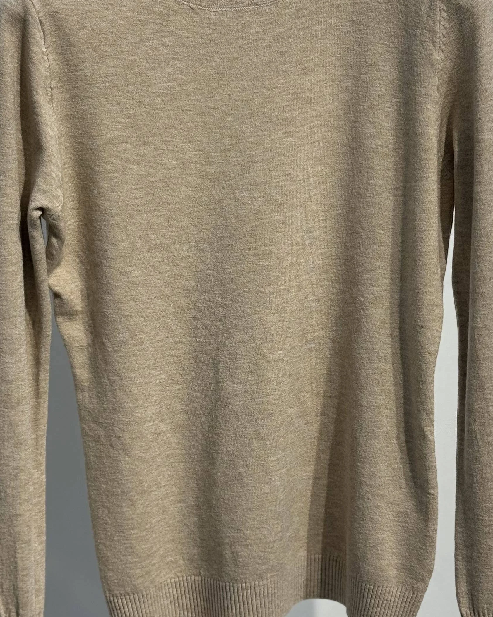 100% LINEN RIBBON SISA SLEEVE T-SHIRT: BEIGE