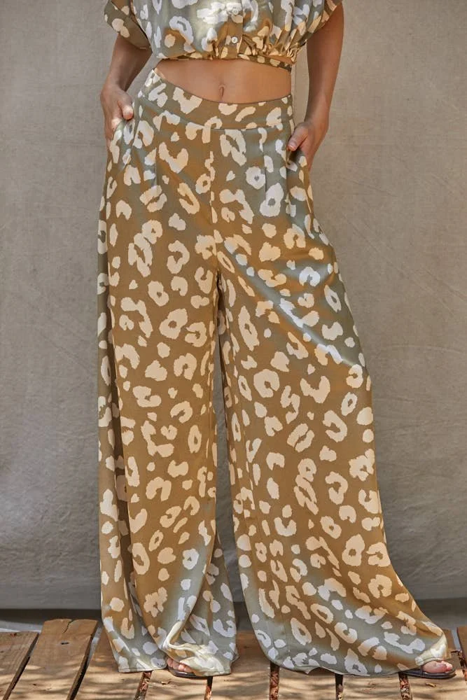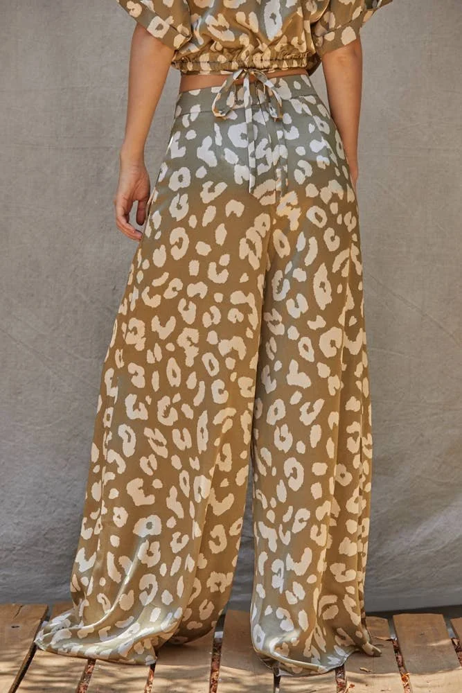 WIDE SMOCK WAIST WIDE LEG PANTS New Sand