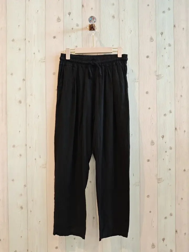 STRIPE 100% LINEN TROUSERS: WATER GREEN