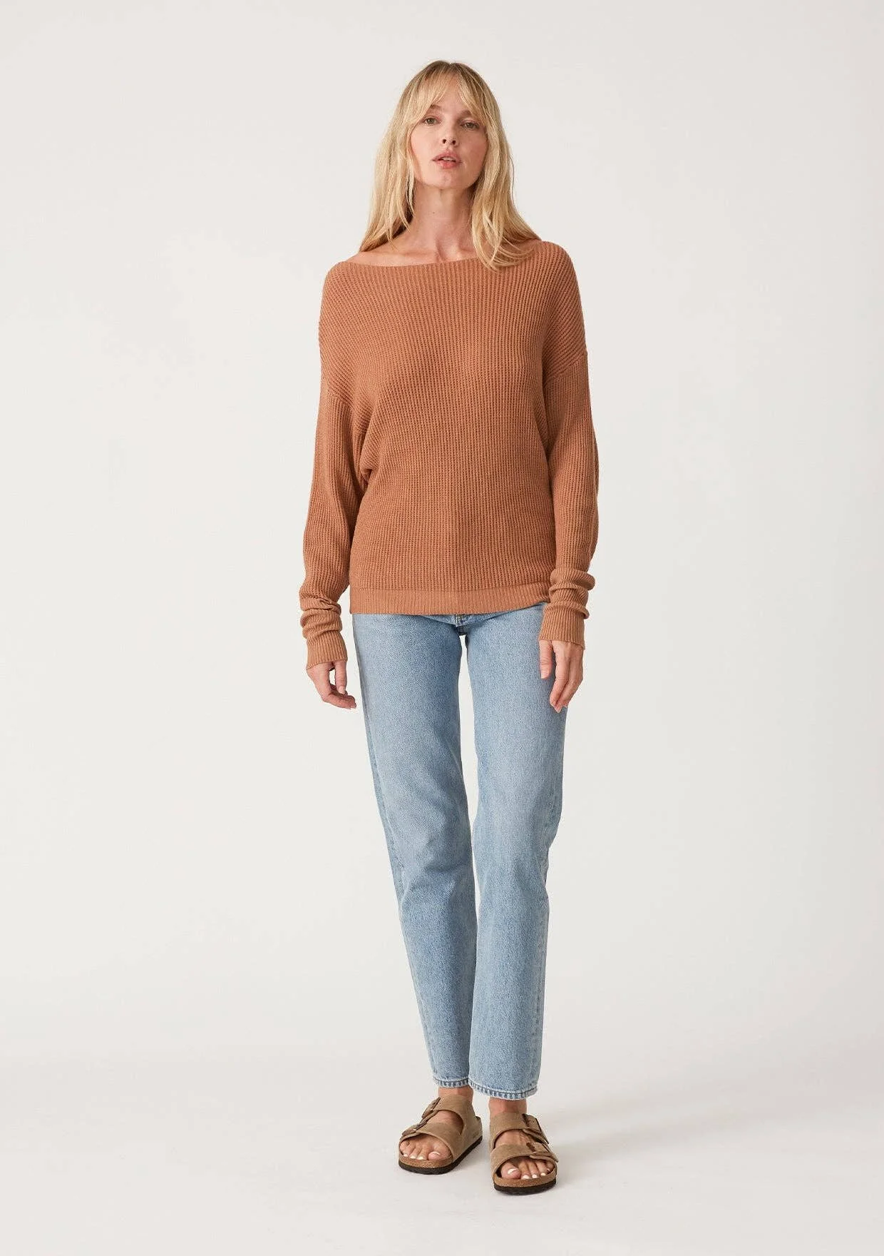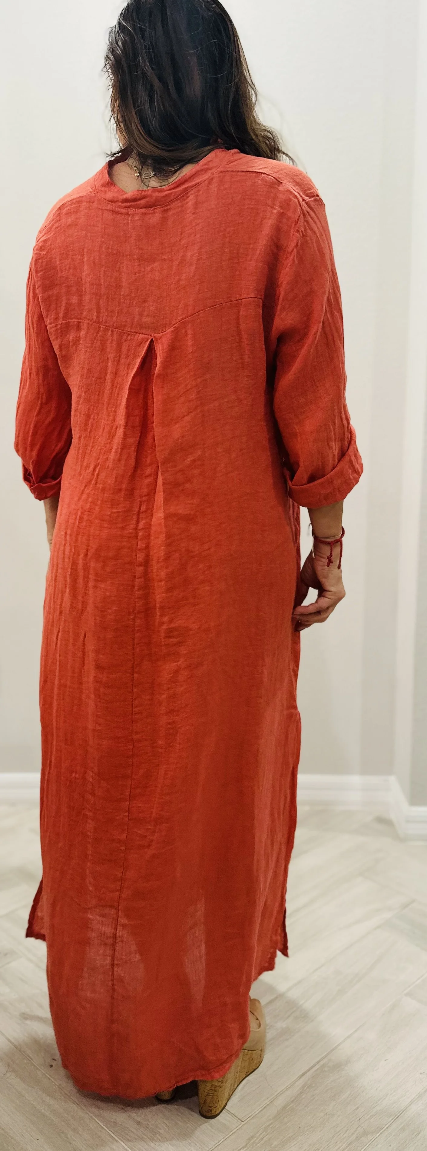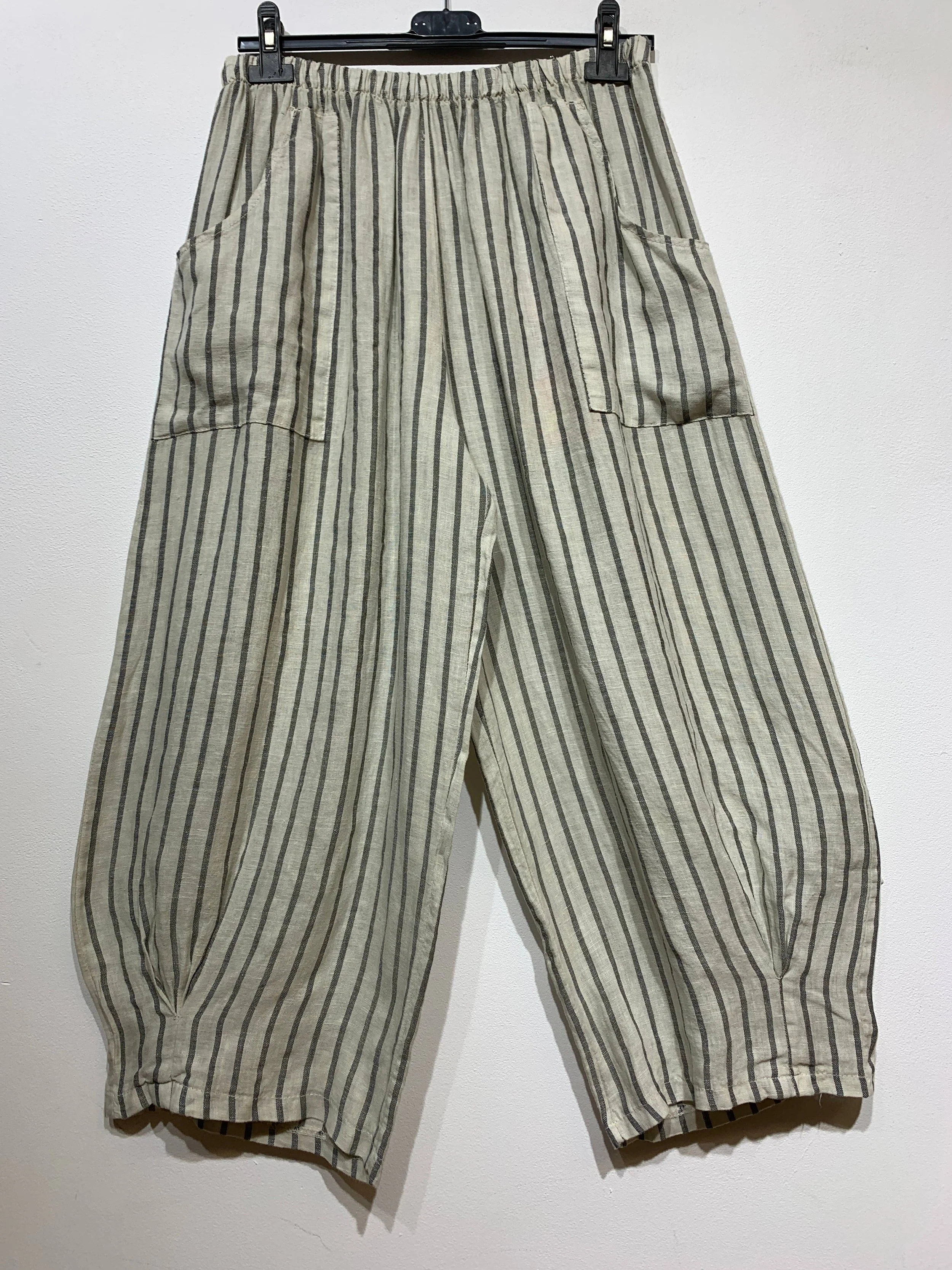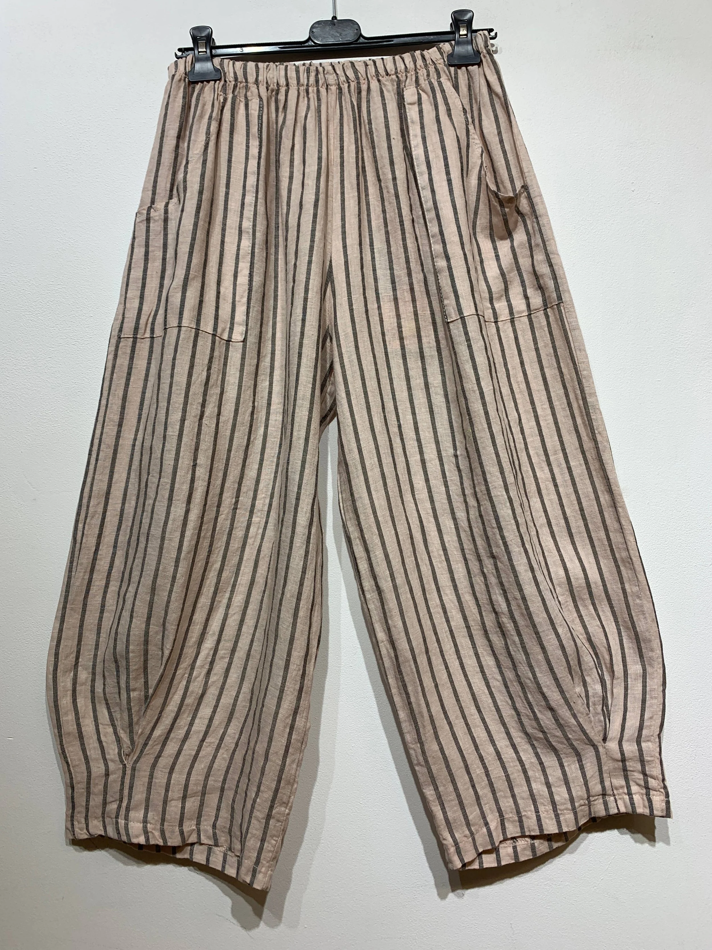 STRIPE 100% LINEN TROUSERS: PERSIMMON