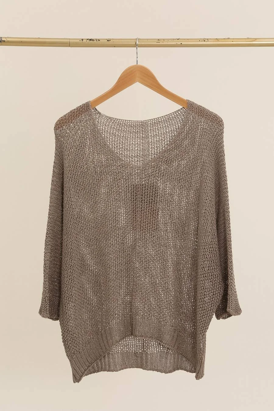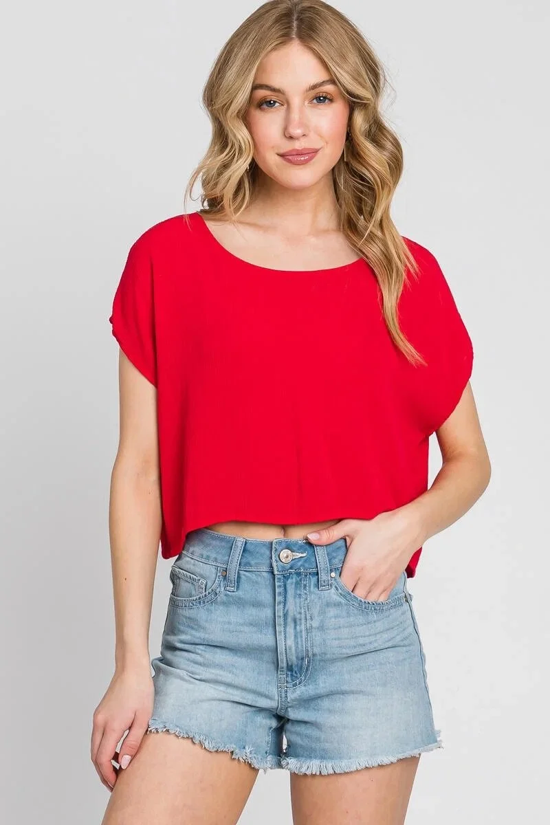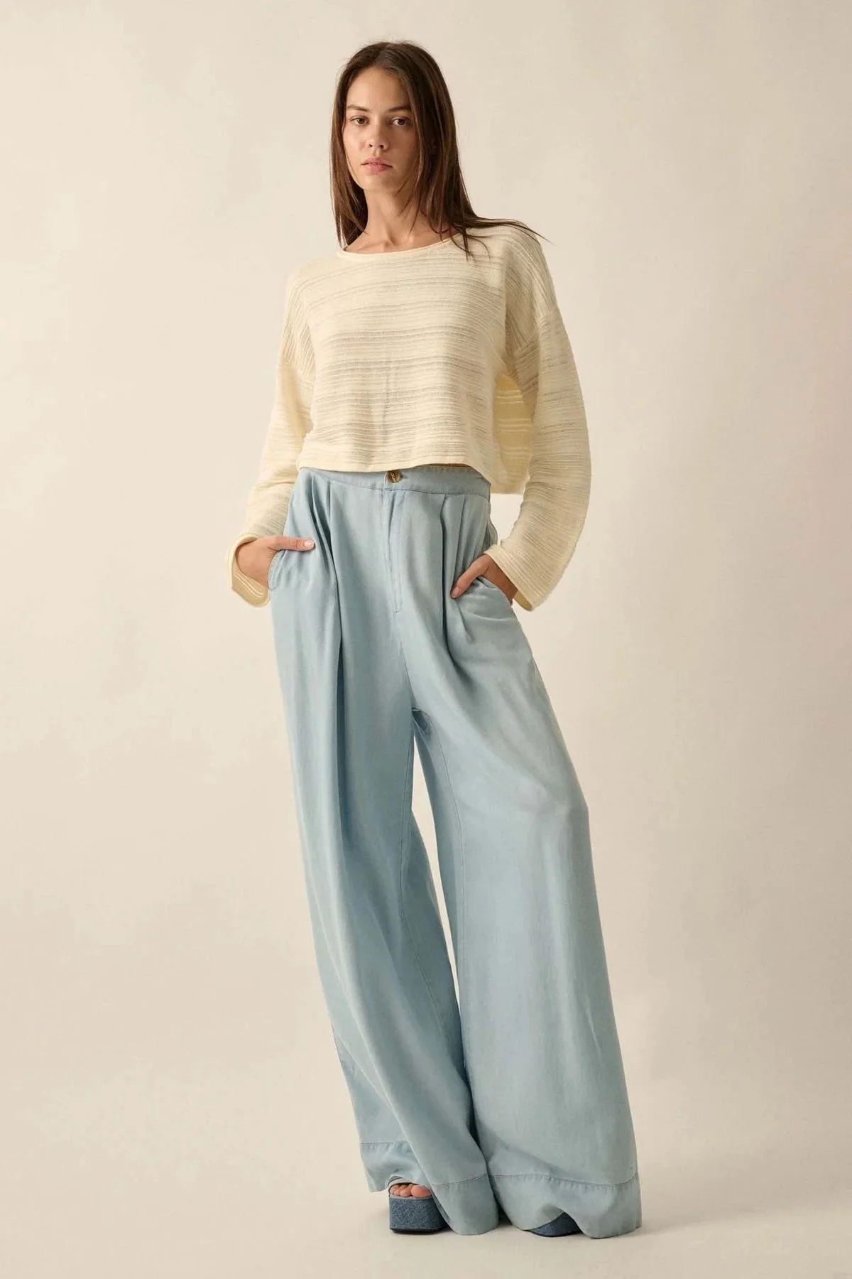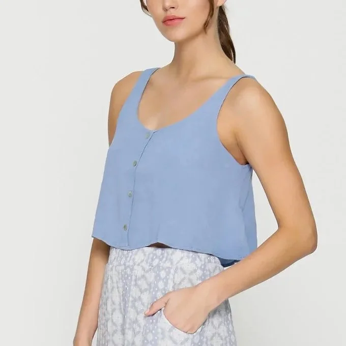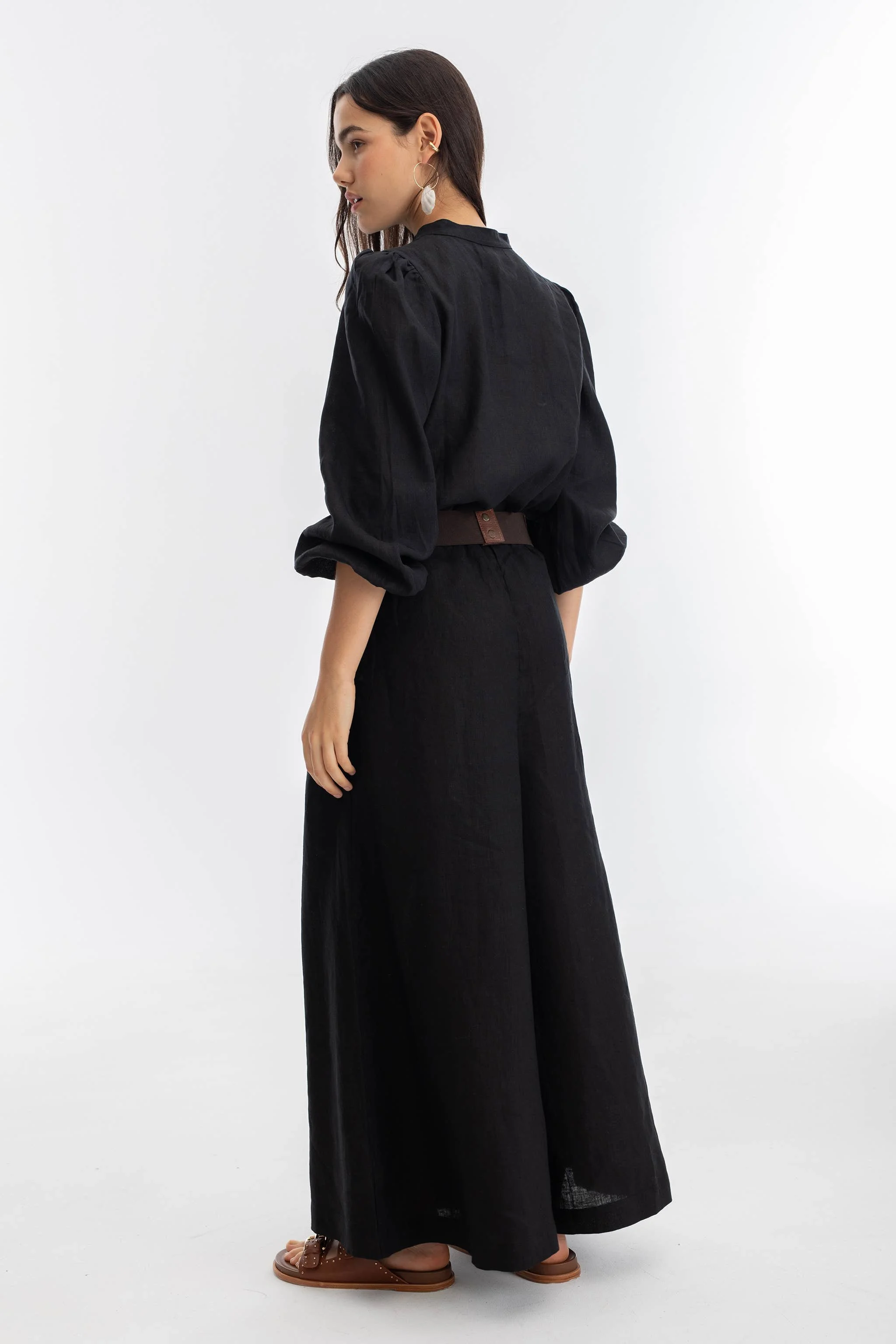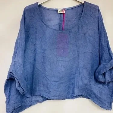 LINEN CROP TOP WITH EXTENDED SLEEVE AND ASYMMETRICAL WRAP-BACK DETAIL