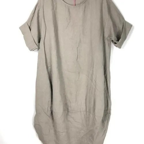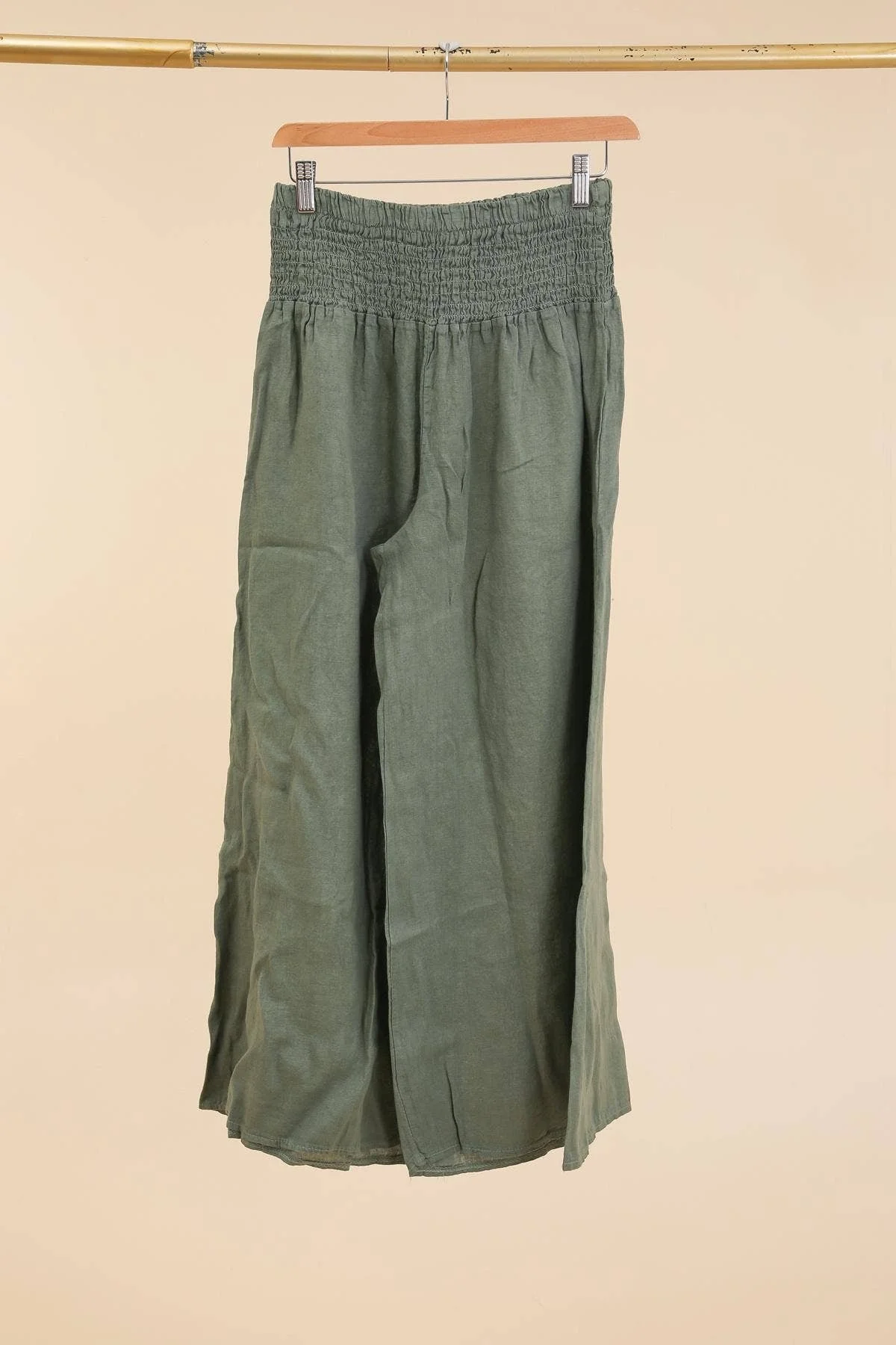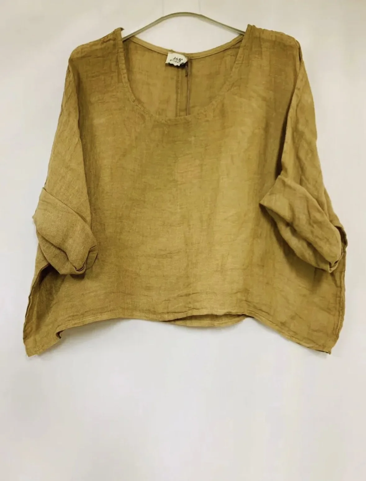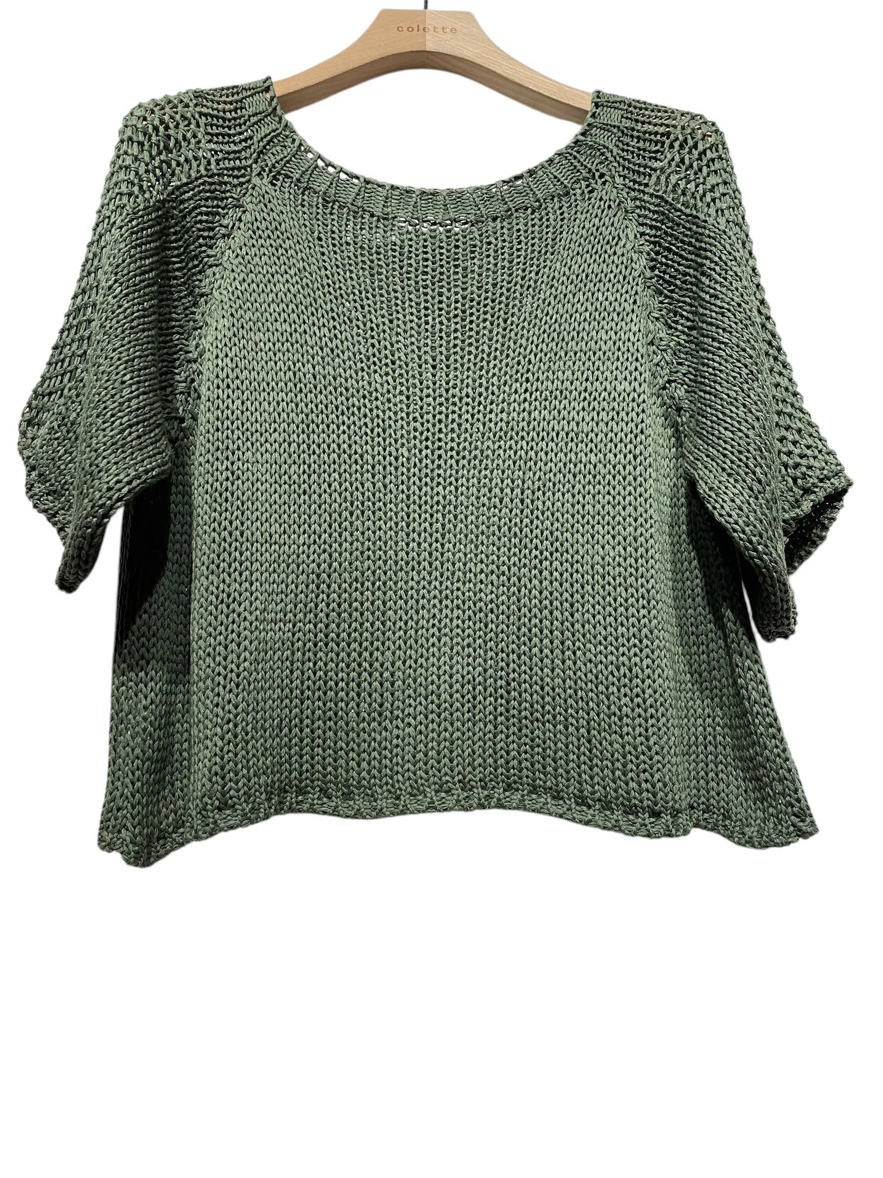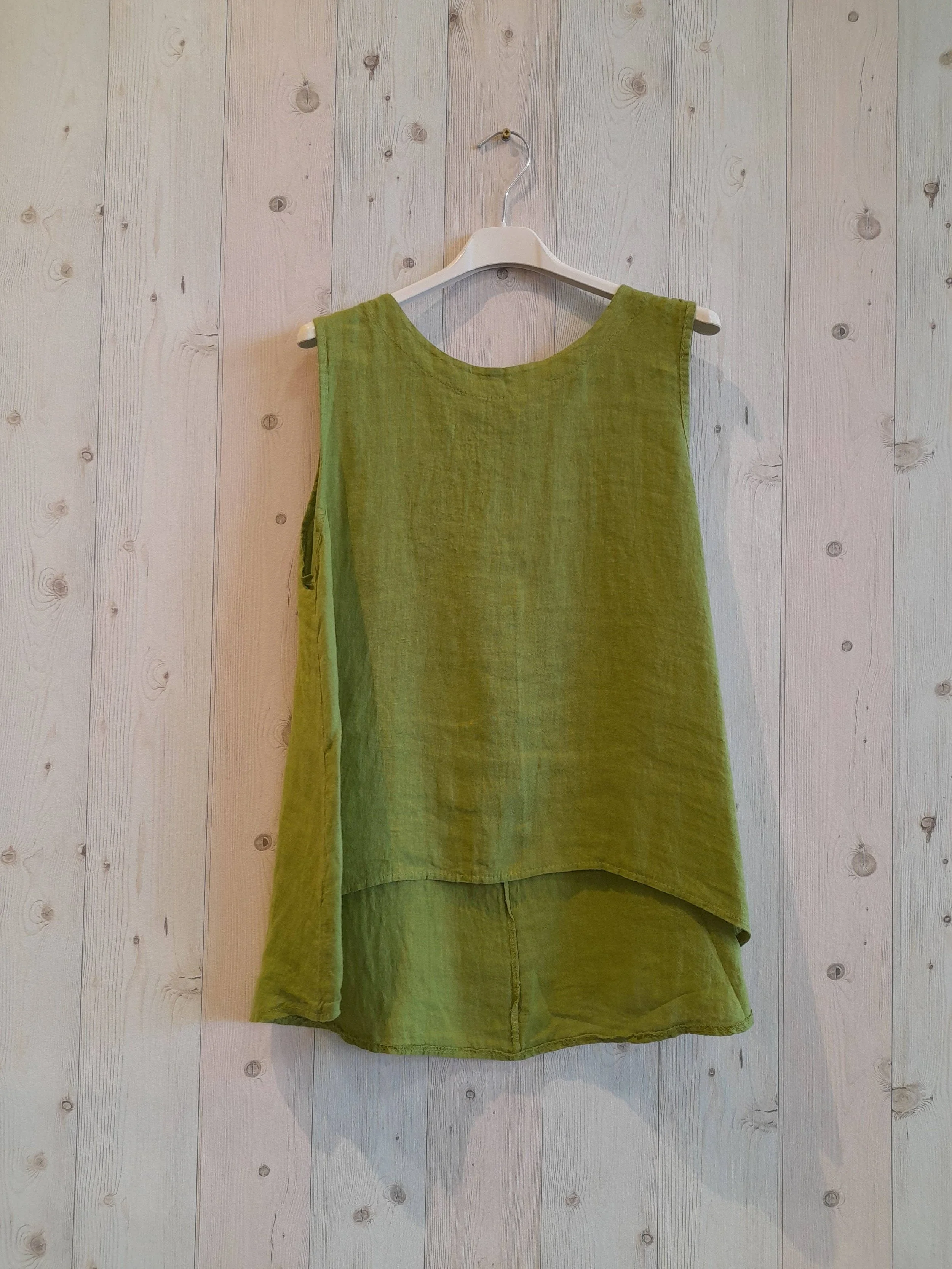 100% LINEN RIBBON SISA SLEEVE T-SHIRT: GREEN