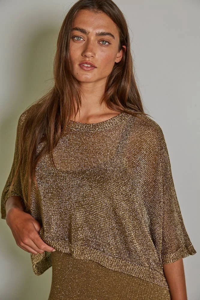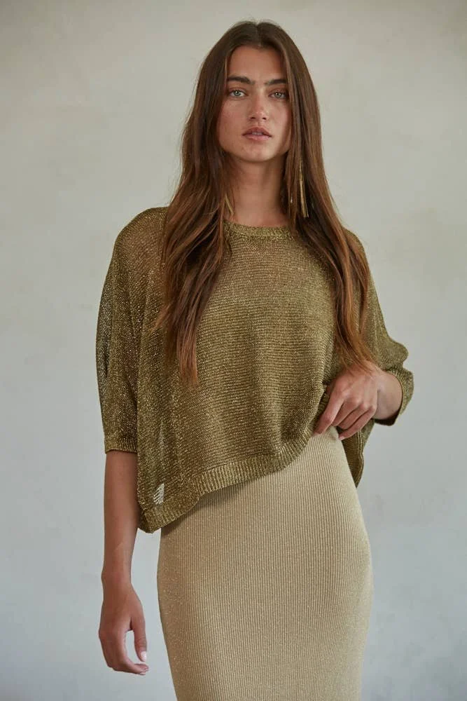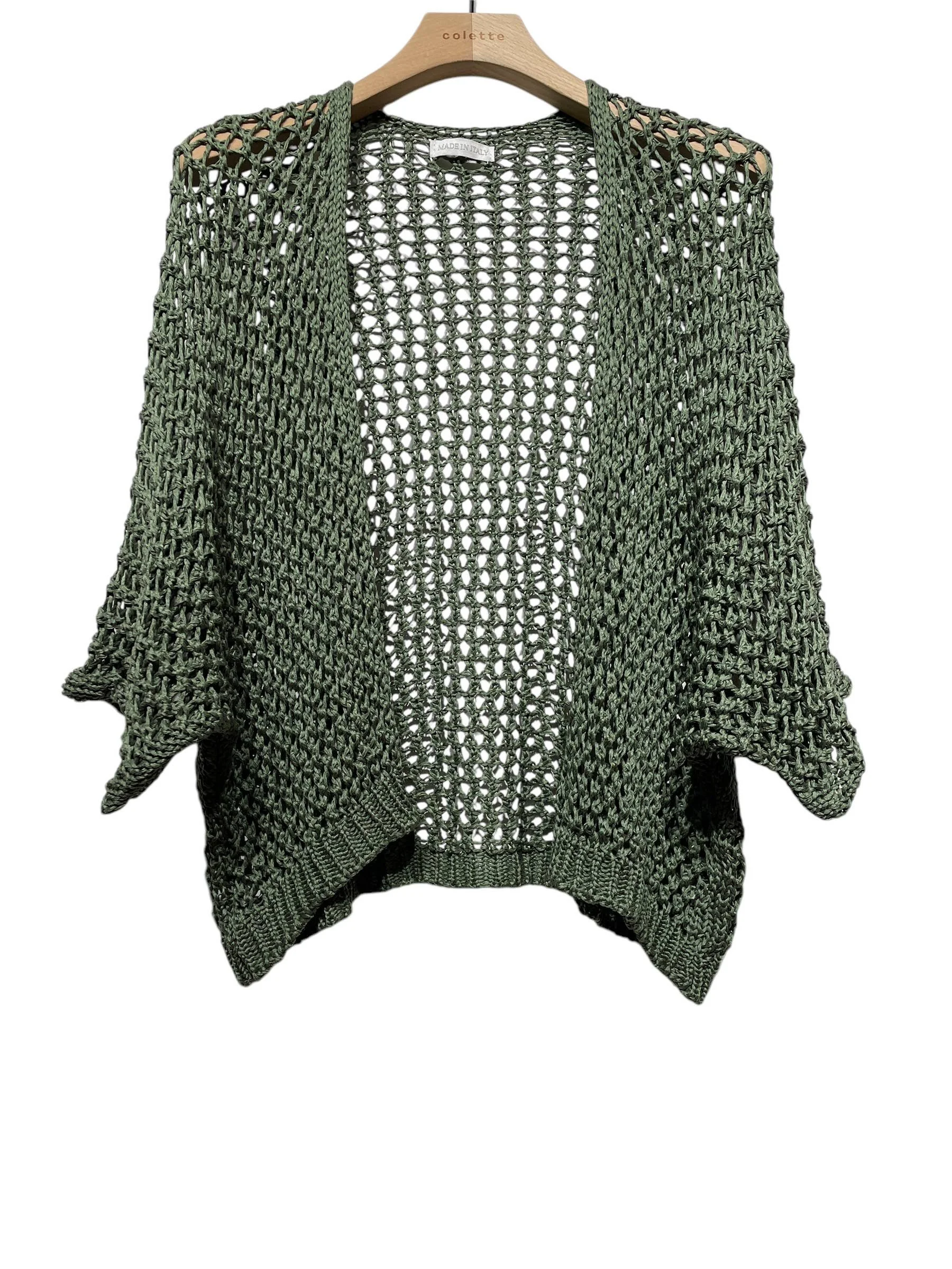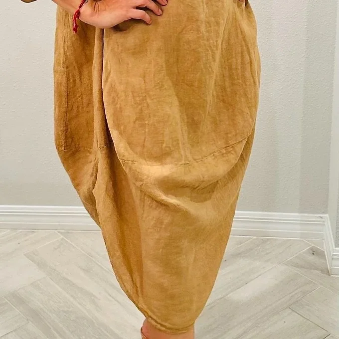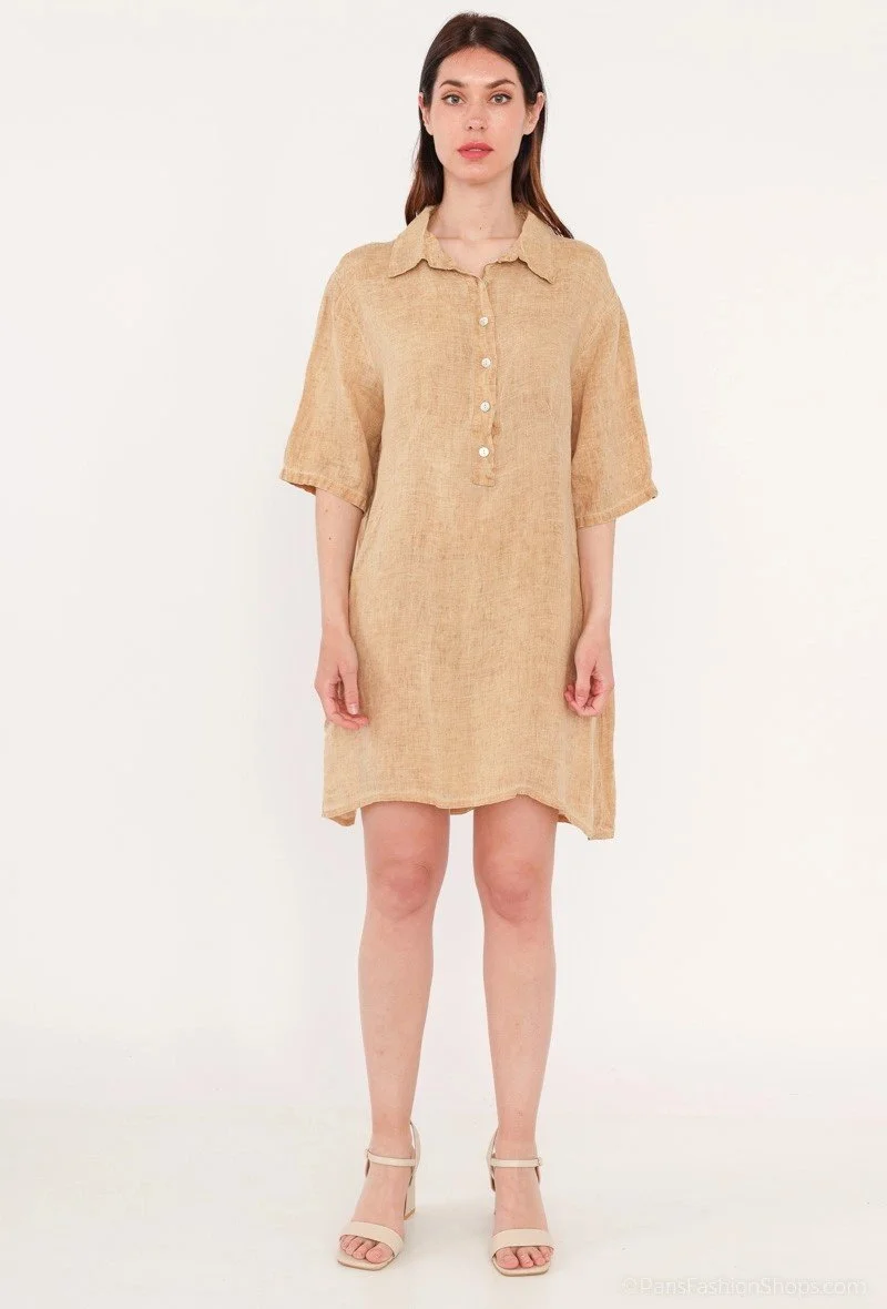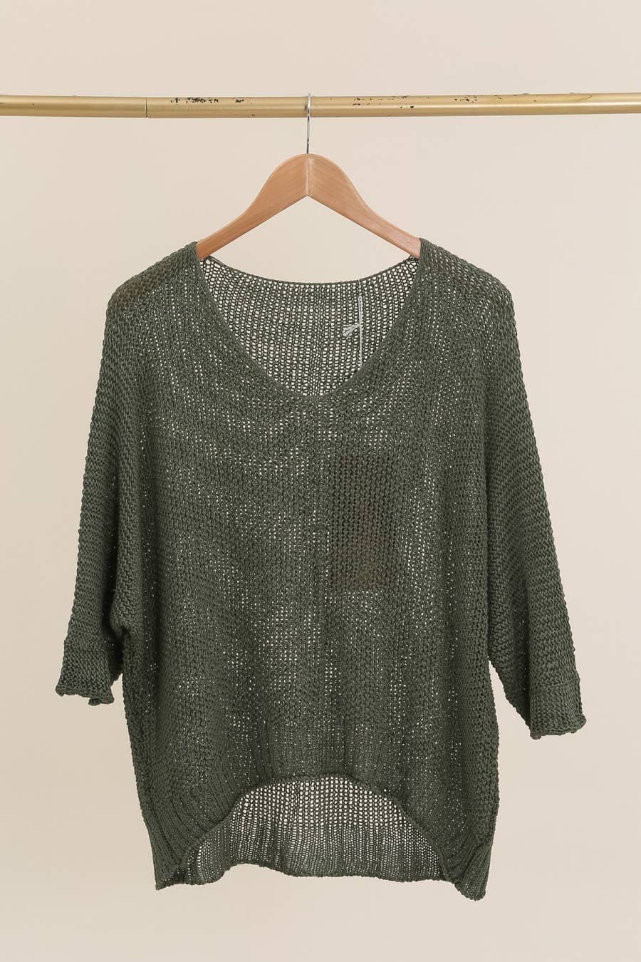 100% LINEN RIBBON SISA SLEEVE T-SHIRT: GREEN