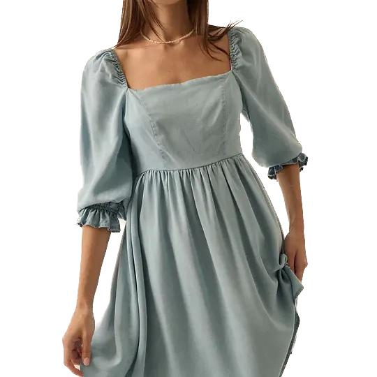Blue Moon Puff-Sleeve Babydoll Mini Dress