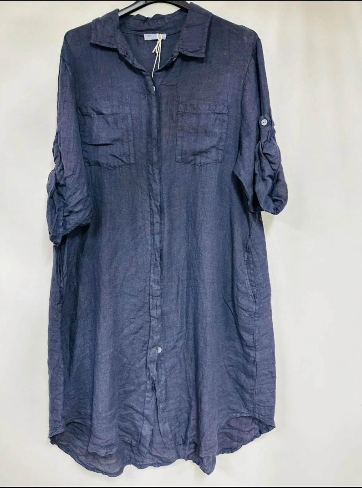 KNOT SHIRT PRINTED 100% LINEN: MARINE