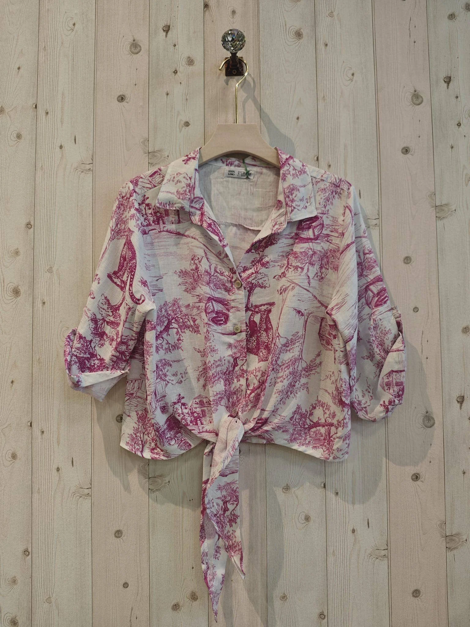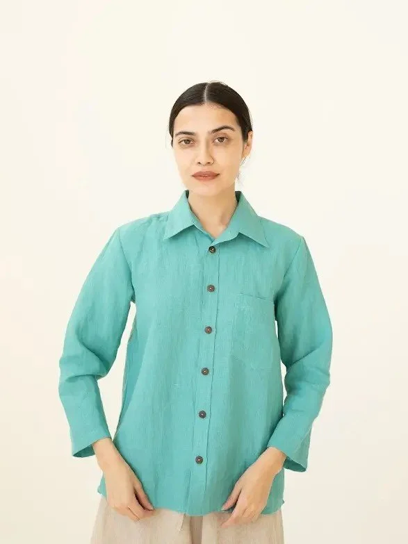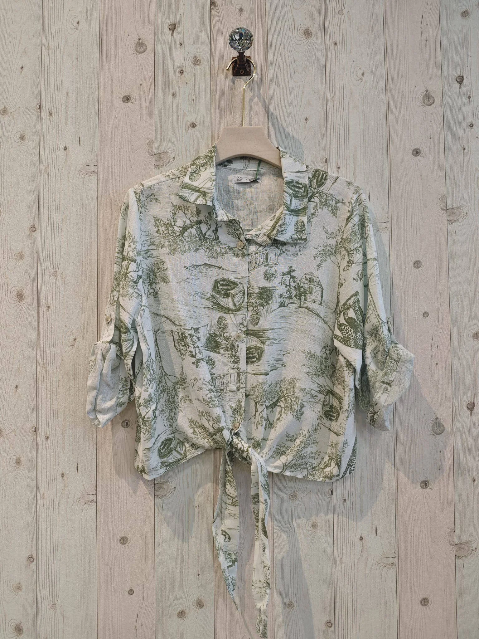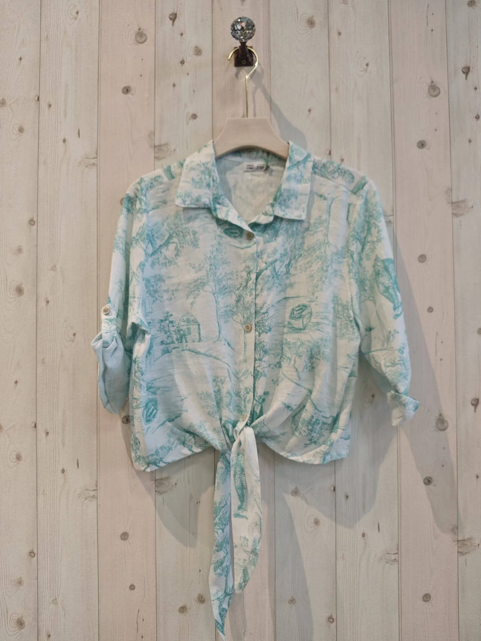 KNOT SHIRT PRINTED 100% LINEN: GREEN WATER