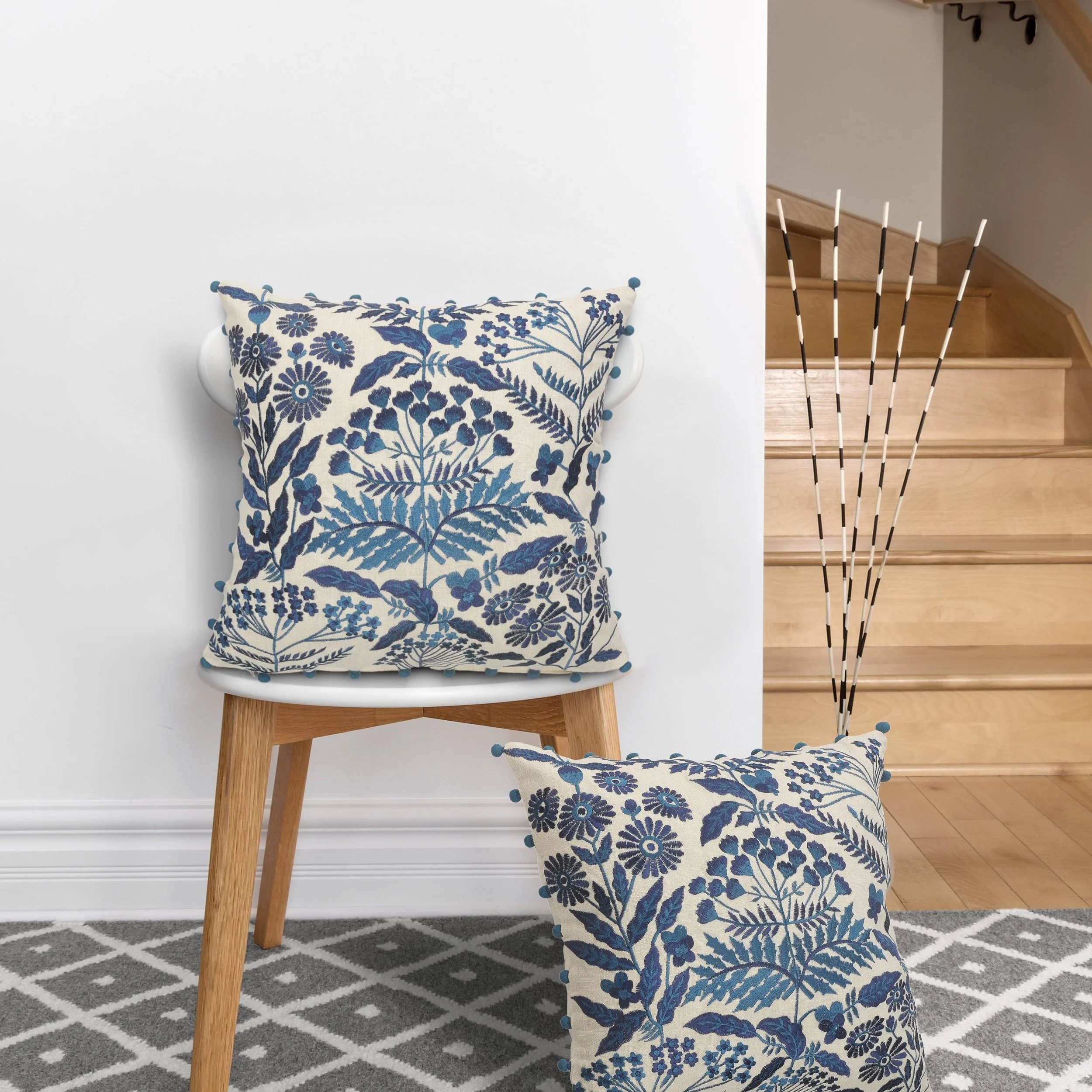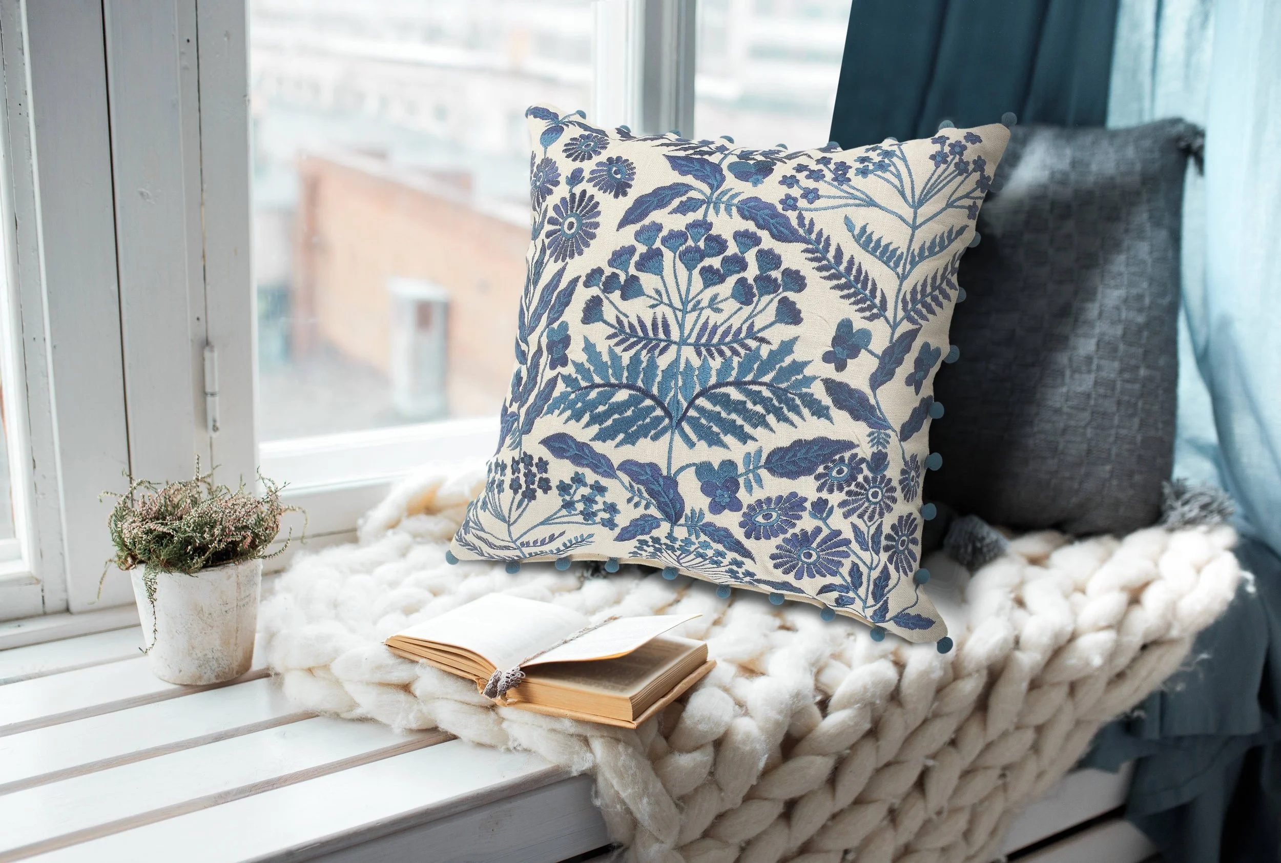 Off-White and Navy Bohemian Floral Throw Pillow: Navy/Off-White, Poly Filled