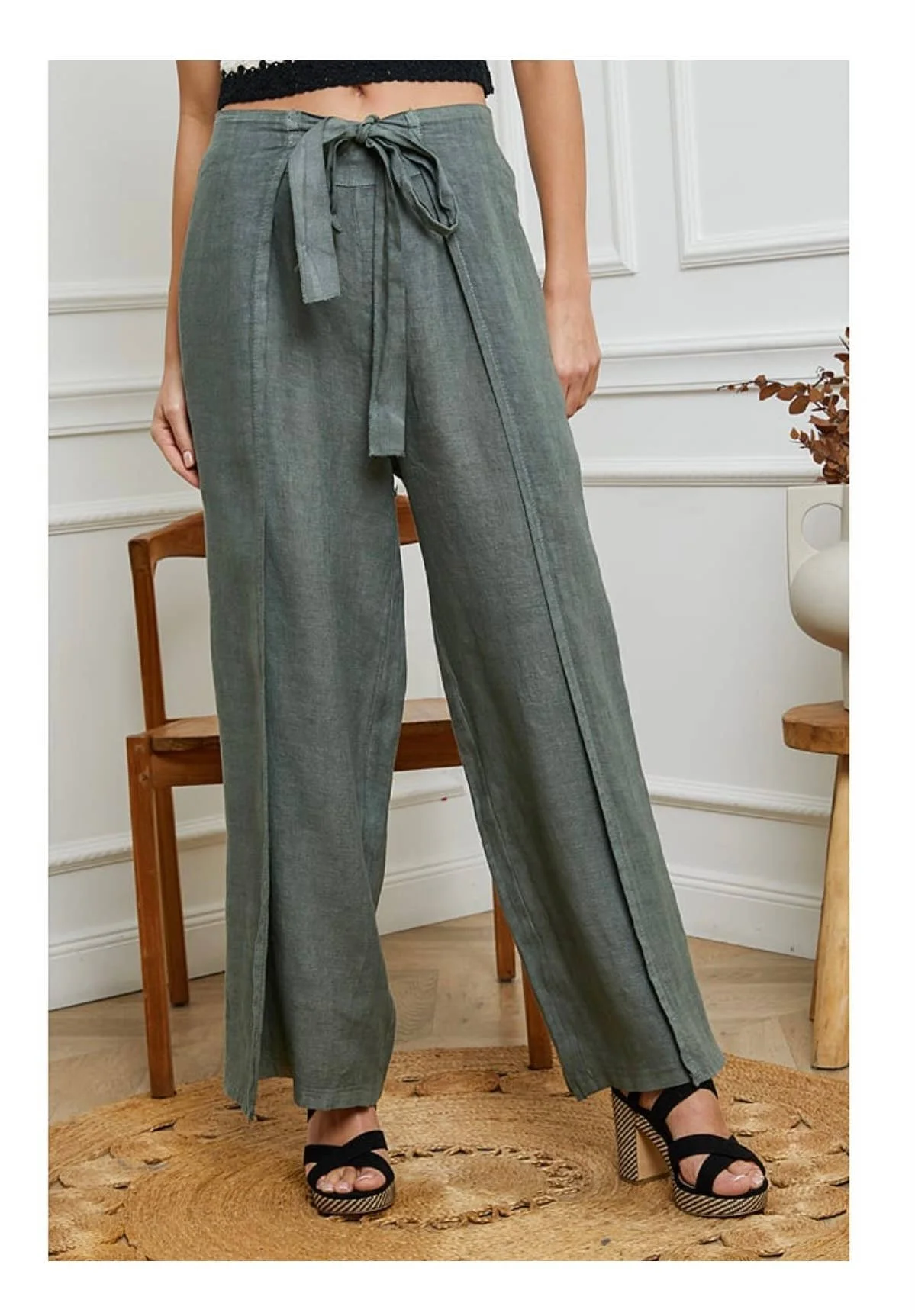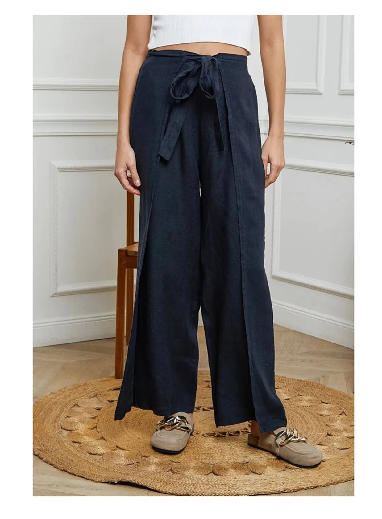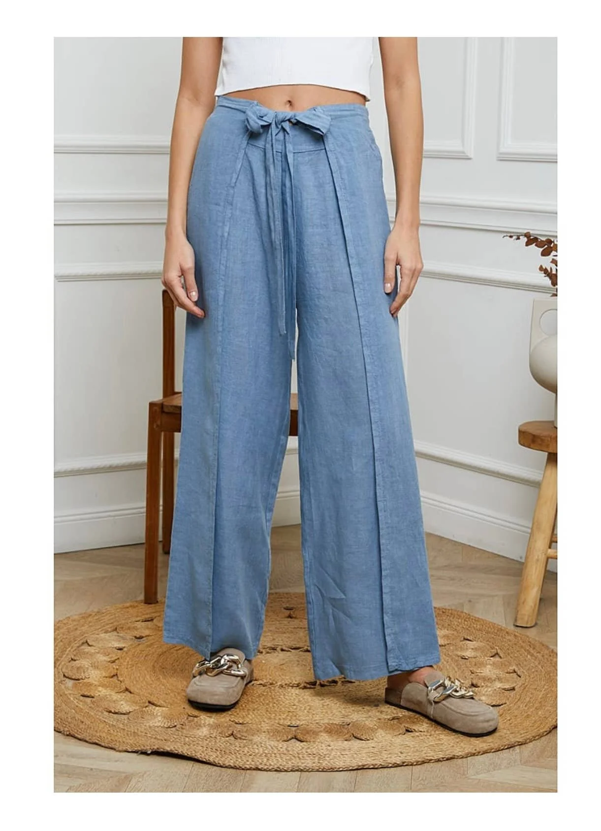 Wide leg Linen Trousers:LG