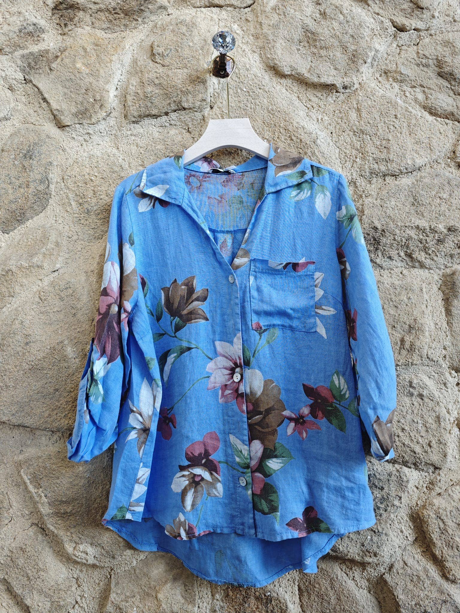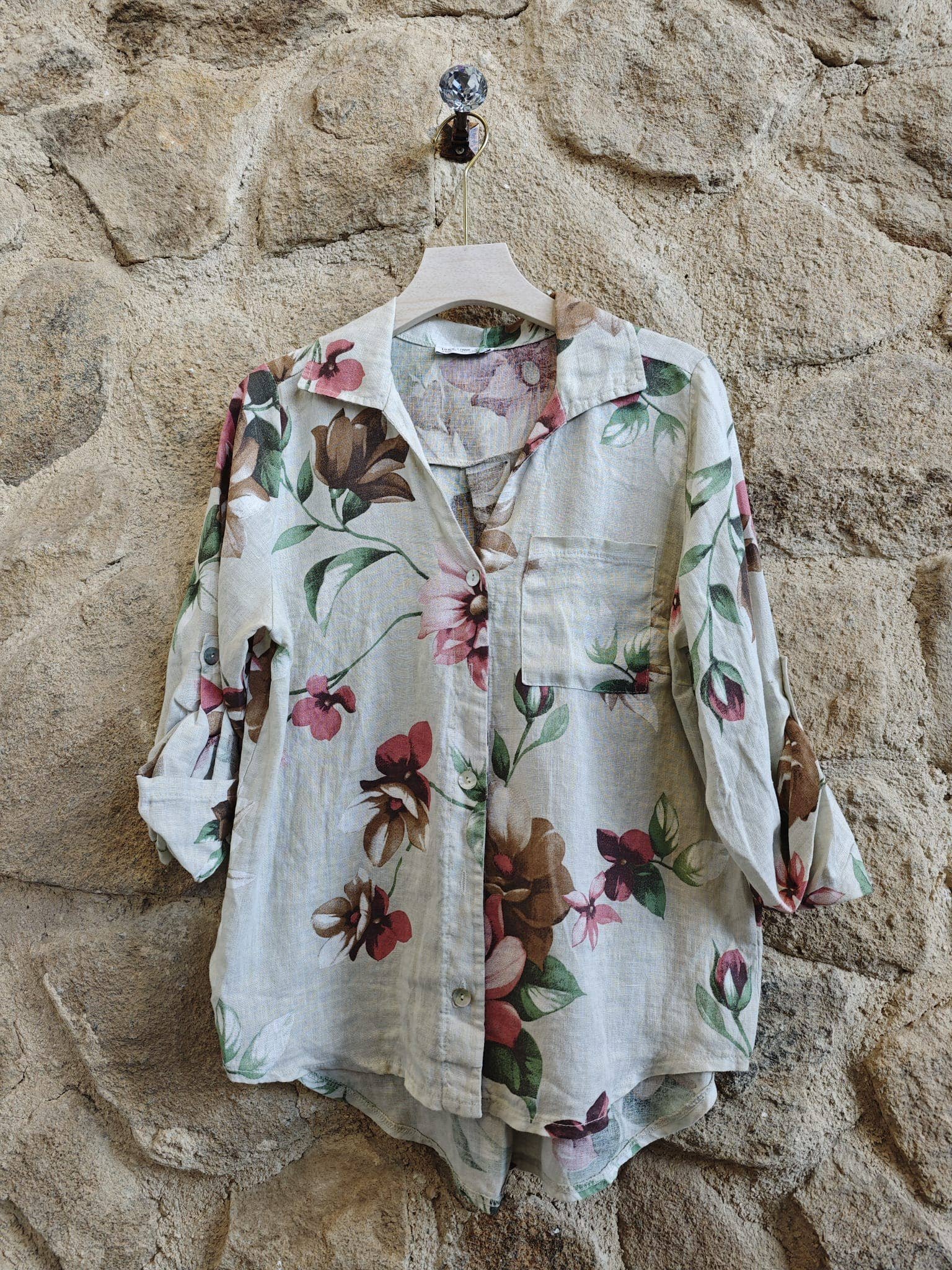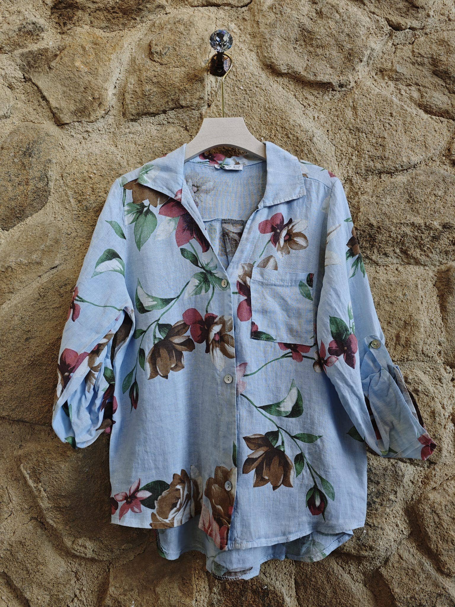 Floral linen jacket 100% Linen O/S Marine