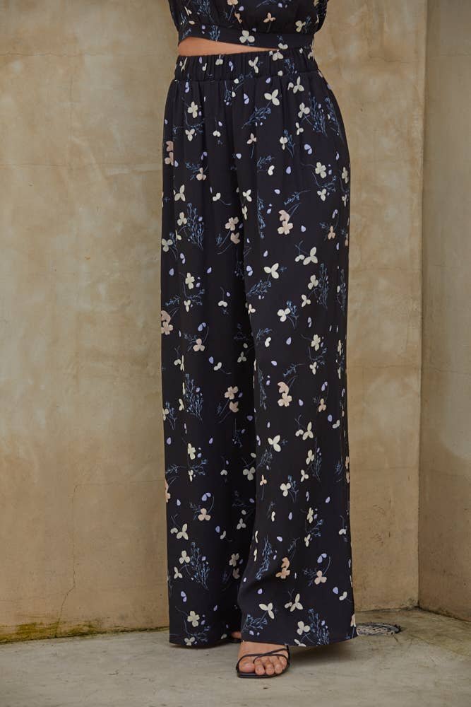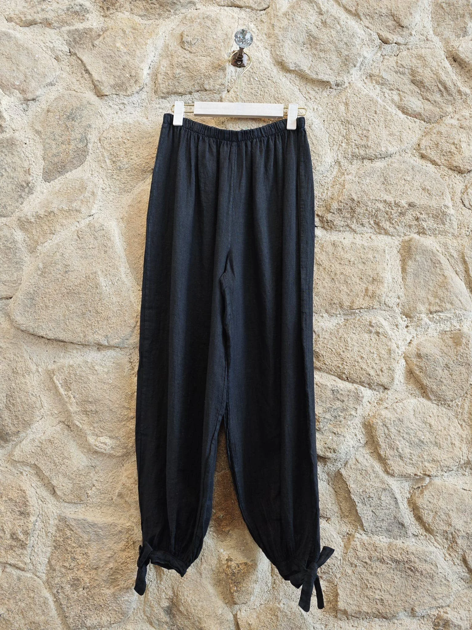 FLOWERS 100% LINEN TROUSERS: Black