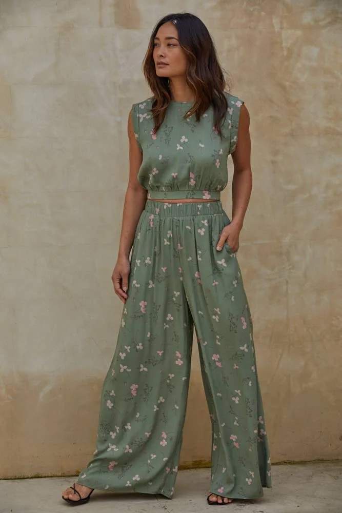 Printed Silk Pants Dark Gold