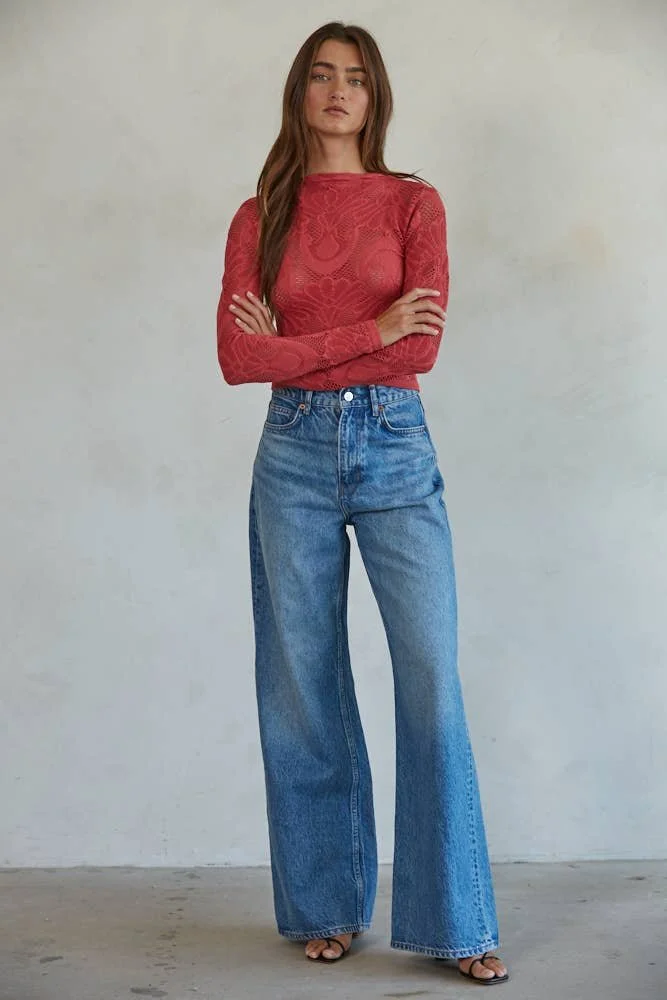WASHED CROP TOP-Red