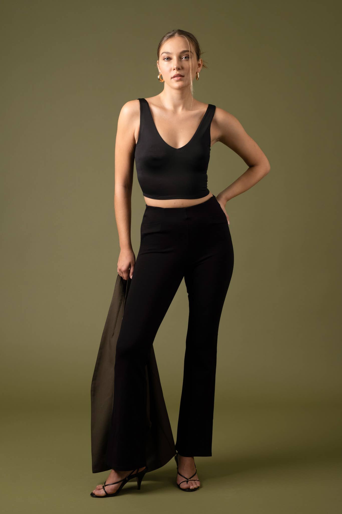 SOLID GAUZE FRONT BUTTON DOWN CROPPED TANK TOP