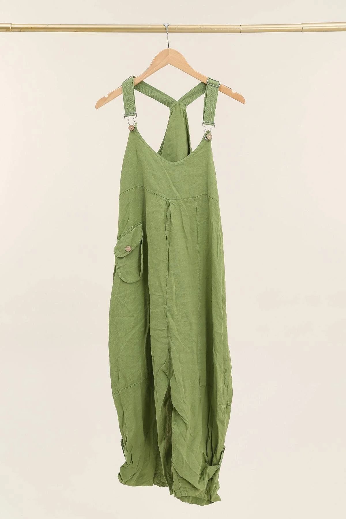 100% LINEN JUMPSUIT : LEAF ANIS BUD