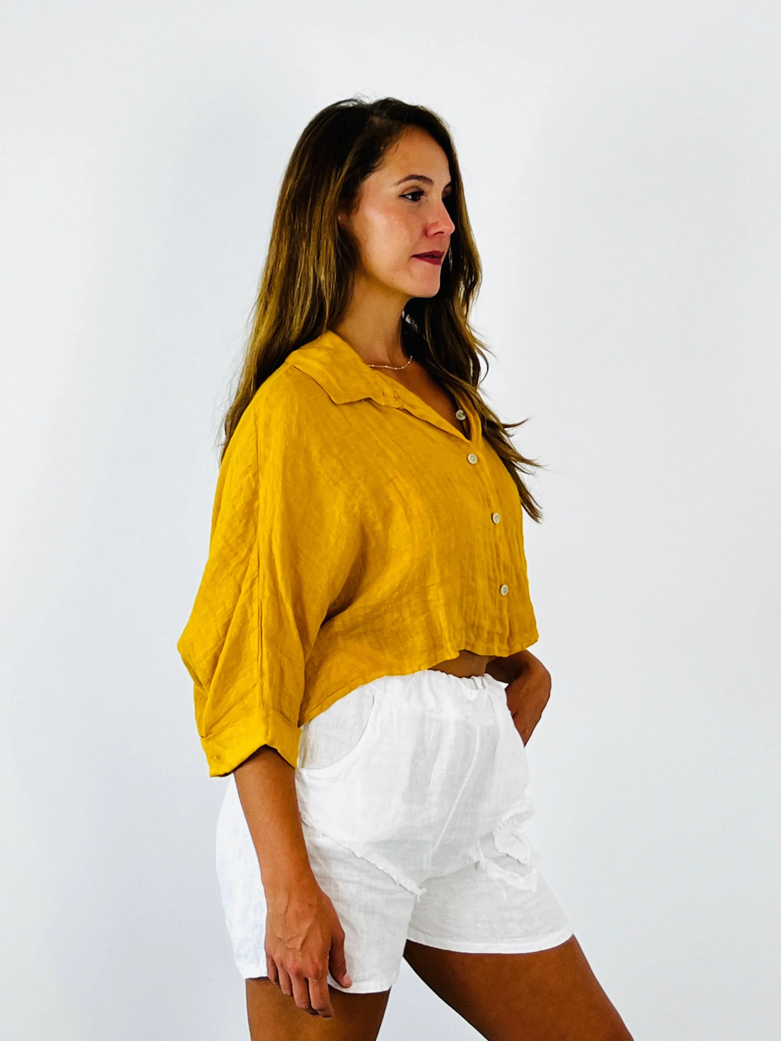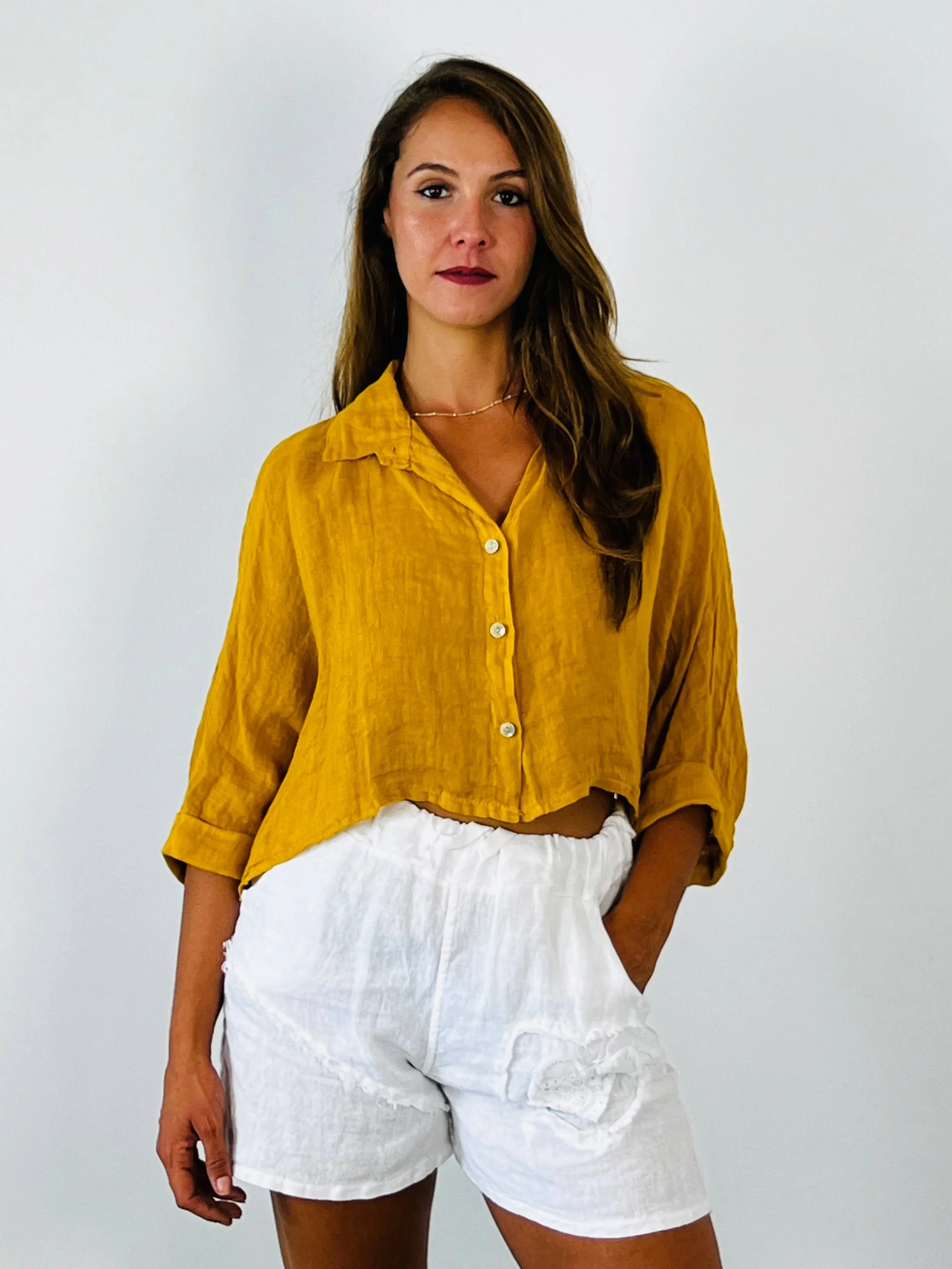 All Items › 100% LINEN SHIRT/Jacket:BEIGE Image 1 of 5 Image 2 of 5 Image 3 of 5 Image 4 of 5 Image 5 of 5 100% LINEN SHIRT/Jacket:BEIGE $65.00 Limited Availability *VERY SHORT SHIRT *100% LINEN COMPOSITION, *MEASURES IN LENGTH 47 CM AND WIDTH IN OVERSIZE STYLE. Get notified by email when this product is in stock. Add To Cart Added! *VERY SHORT SHIRT *100% LINEN COMPOSITION, *MEASURES IN LENGTH 47 CM AND WIDTH IN OVERSIZE STYLE.