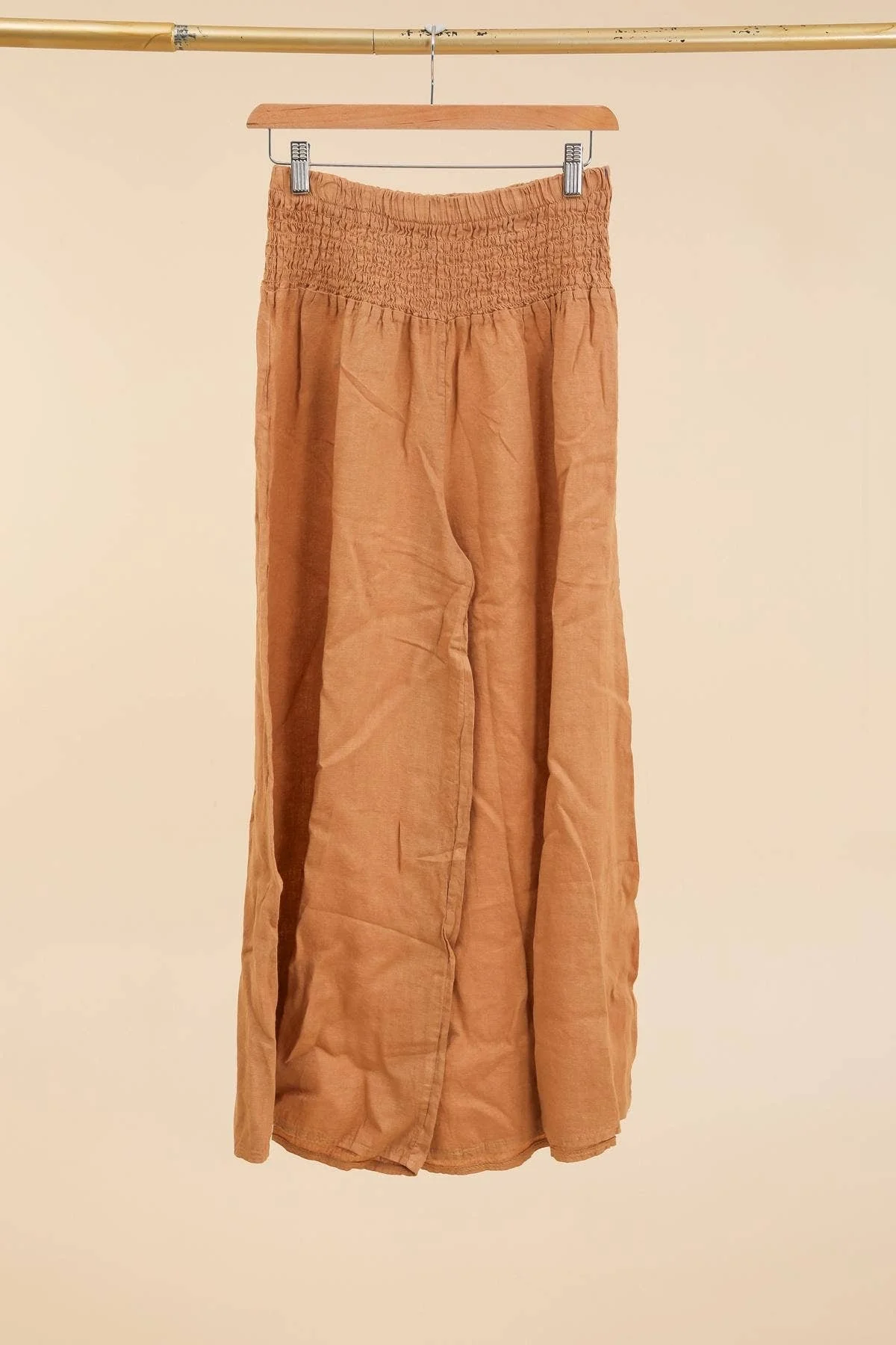 100% Linen Wide Leg Pant: Camel