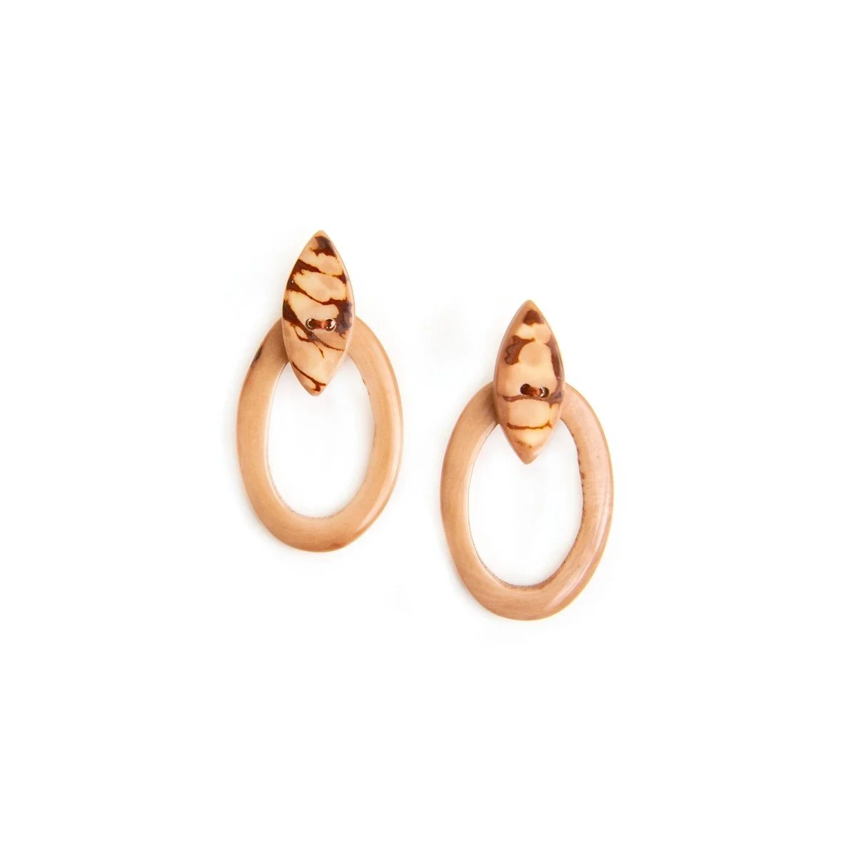 •Approximately 2" L •Made with Tagua • Earwires lead free, nickel free, and hypoallergenic. • Handmade in Ecuador • Due to the nature and size of the tagua nuts, all sizes are approximate…not exact Details
