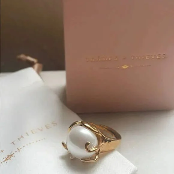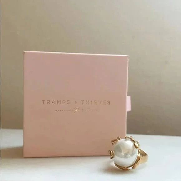 All Items › Adrift Ring Image 1 of 5 Image 2 of 5 Image 3 of 5 Image 4 of 5 Image 5 of 5 Adrift Ring $45.00 sold out 14K Gold Filled ring featuring a faux large pearl in centerSize is adjustable- fits size 7 bestTramps+Thieves DesignMade in Los Angeles Get notified by email when this product is in stock. Sold Out Added! 14K Gold Filled ring featuring a faux large pearl in centerSize is adjustable- fits size 7 bestTramps+Thieves DesignMade in Los Angeles