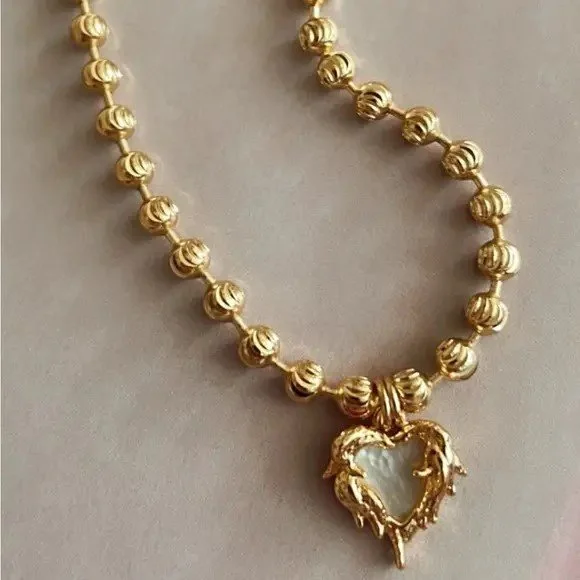 All Items › Alexandria Necklace Image 1 of 1 Alexandria Necklace $64.00 sold out 18K Gold filled with Brass Ball chain necklace featuring a small mother of pearl drip heart pendent17" LongTramps+Thieves DesignMade in Los AngelesDetails• Made in United States• Dimensions: 17 in (43.2 cm) Get notified by email when this product is in stock. Sold Out Added! 18K Gold filled with Brass Ball chain necklace featuring a small mother of pearl drip heart pendent17" LongTramps+Thieves DesignMade in Los AngelesDetails• Made in United States• Dimensions: 17 in (43.2 cm)