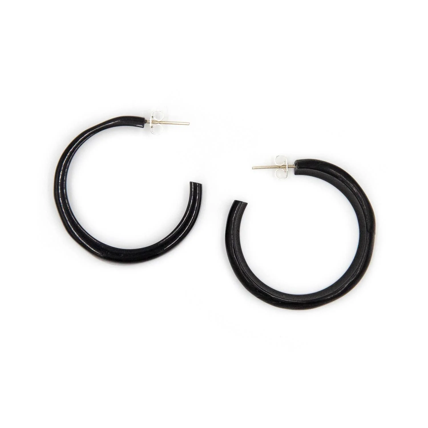 The perfect addition to any outfit. Simple and trendy tagua hoops are the perfect accessory this season.