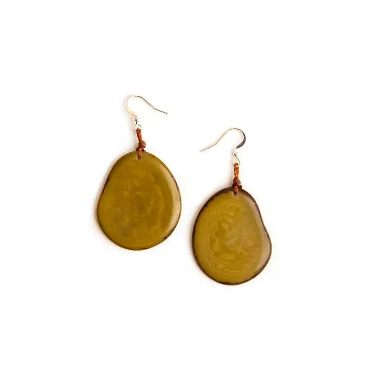 One of our everlasting pieces that go with any look. Lightweight. Thin tagua slices. Earwires lead-free, nickel-free, and hypoallergenic. Handmade in Ecuador. Due to the nature and size of the tagua nuts, all sizes are approximate, not exact. Dimension - 1-1.5" L.