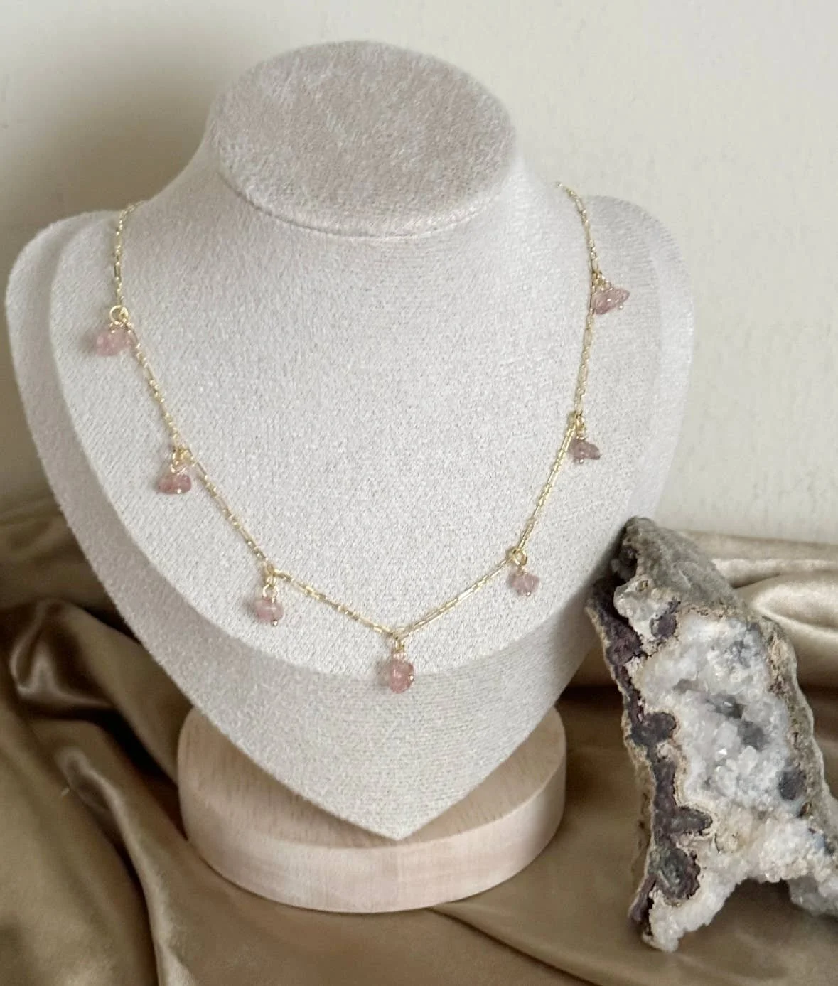 Strawberry quartz is a pink crystal that is associated with love, compassion, and healing. It is also known as fire quartz. Radiates positive vibrations and manifests the energy of abundance