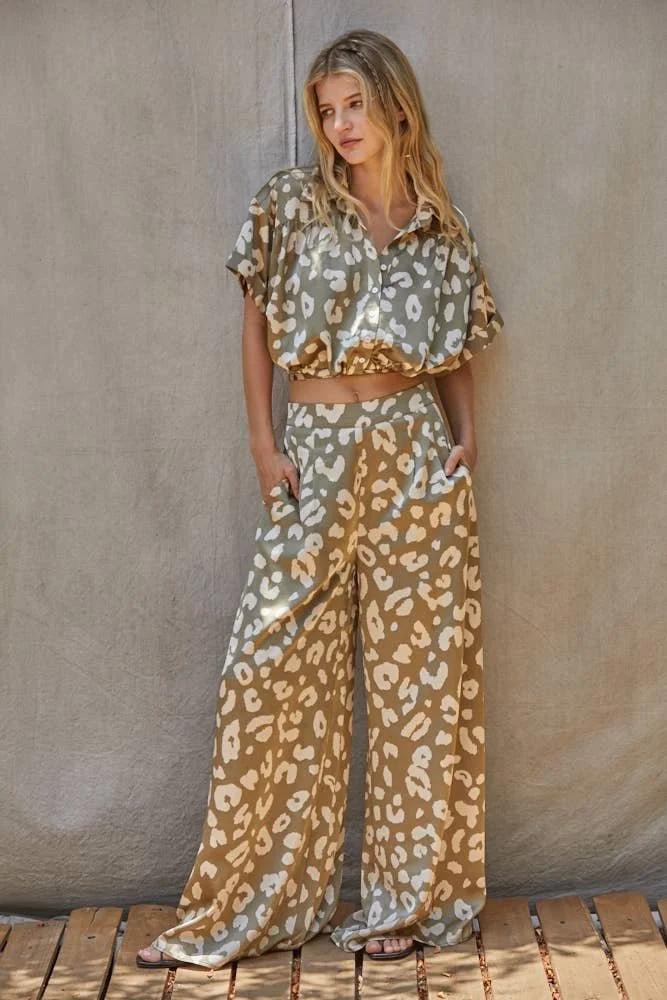 All Items › Animal Wide Leg Pants:Black, L Image 1 of 5 Image 2 of 5 Image 3 of 5 Image 4 of 5 Image 5 of 5 Animal Wide Leg Pants:Black, L $65.00 sold out Woven Satin Animal Printed Long Wide Leg Pants With Side Pockets And Lining Get notified by email when this product is in stock. Sold Out Added! Woven Satin Animal Printed Long Wide Leg Pants With Side Pockets And Lining