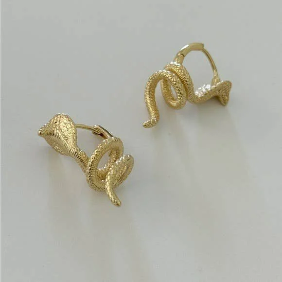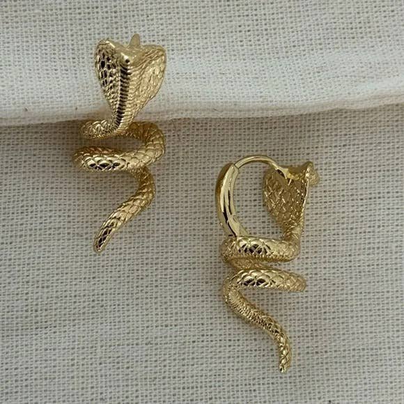 All Items › Bennu Serpent Image 1 of 5 Image 2 of 5 Image 3 of 5 Image 4 of 5 Image 5 of 5 Bennu Serpent $58.00 Limited Availability Pair of 24K Gold Filled Serpent Drop HuggiesMeasures 30 mm*Sold as a setTramps+Thieves DesignMade in Los Angeles Get notified by email when this product is in stock. Add To Cart Added! Pair of 24K Gold Filled Serpent Drop HuggiesMeasures 30 mm*Sold as a setTramps+Thieves DesignMade in Los Angeles