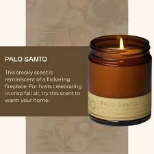 All Items › Bia Palo Santo Candle Image 1 of 1 Bia Palo Santo Candle $36.00 Limited Availability What makes a good candle?Slow burn. No smoke. lasting smell.Scent NotesTop: Rosemary, Palo SantoMiddle: Smoky Cedar Wood, LeatherBottom: Sandalwood, Tonka Bean, Smooth Incense Get notified by email when this product is in stock. Quantity: Add To Cart Added! What makes a good candle?Slow burn. No smoke. lasting smell.Scent NotesTop: Rosemary, Palo SantoMiddle: Smoky Cedar Wood, LeatherBottom: Sandalwood, Tonka Bean, Smooth Incense
