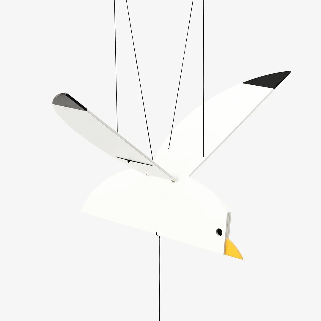Some say that birds are a symbol of luck, love, healing, and a lot of other good things. Hang this wooden bird mobile, composed of graphic lines and clean shapes, in your favorite room as a reminder of all the nice things. Pull gently on the string to help your bird take flight. Take all three under your wing to create your own flock—after all, birds of a feather like to fly together.