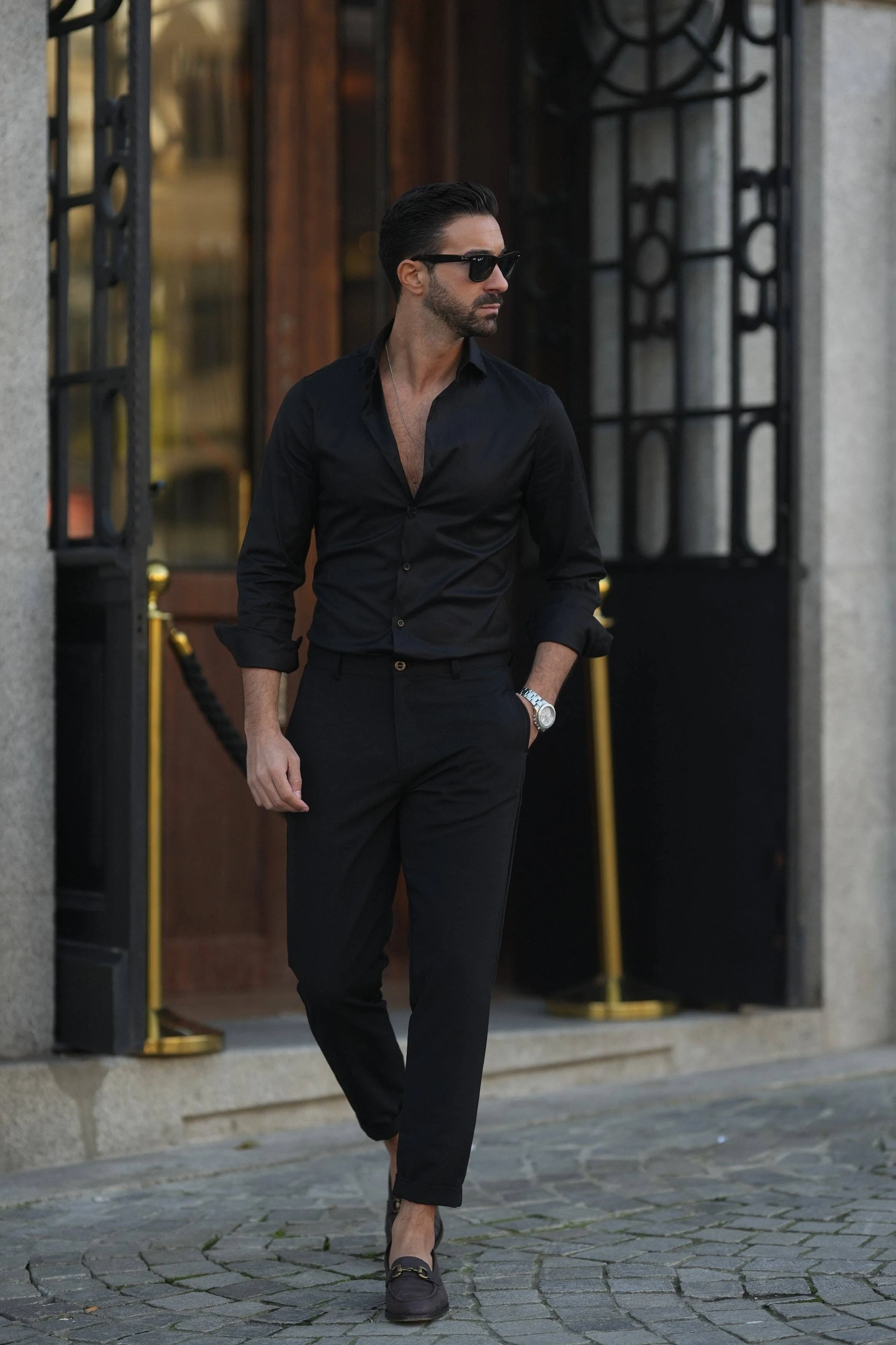 BLACK ELASTIC SLIM-FIT: XL