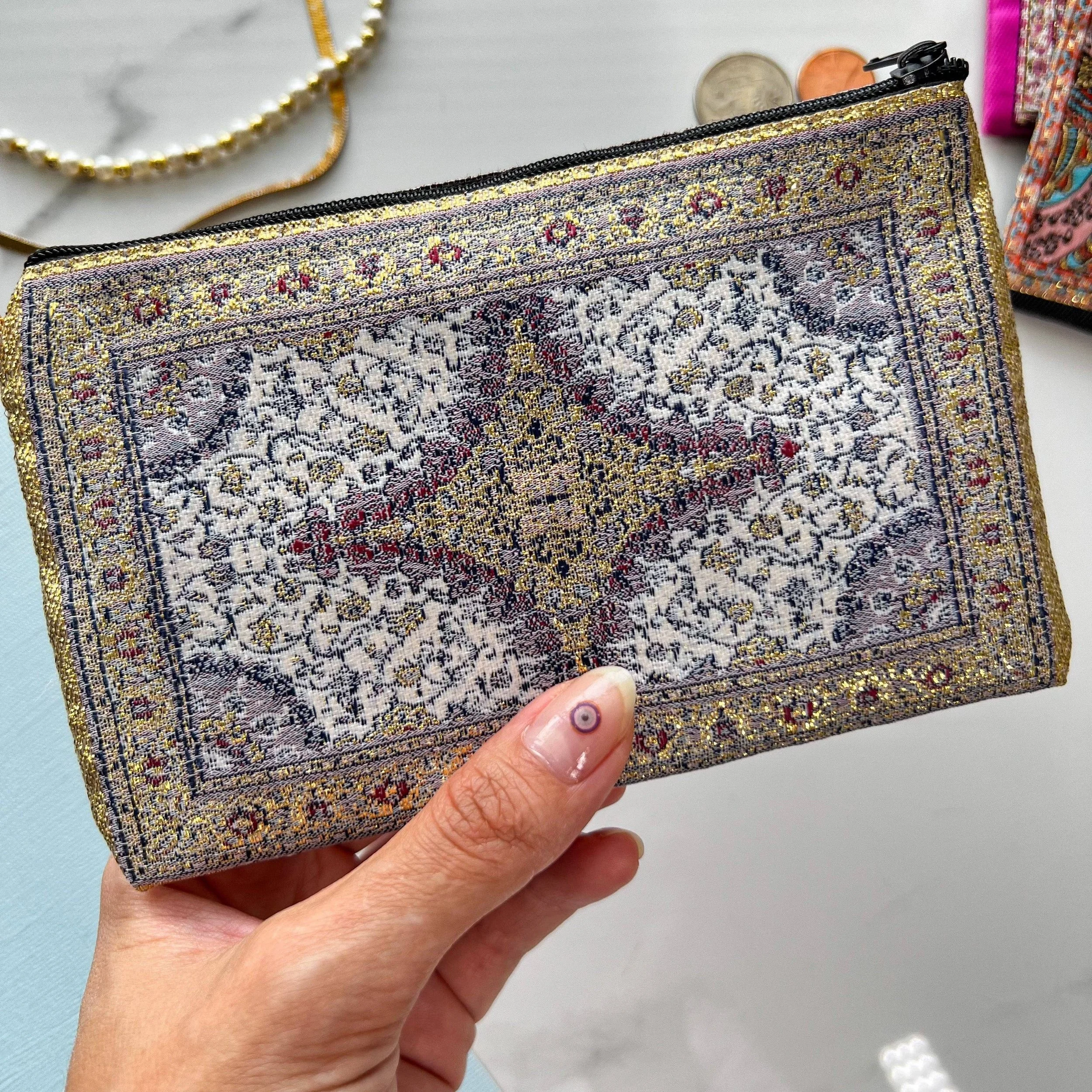 Made from gold threaded fabric featuring traditional rug designs of Turkey. Crafted from high-quality materials, our pouches feature a sturdy zippered closure that keeps your items secure and prevents them from falling out.