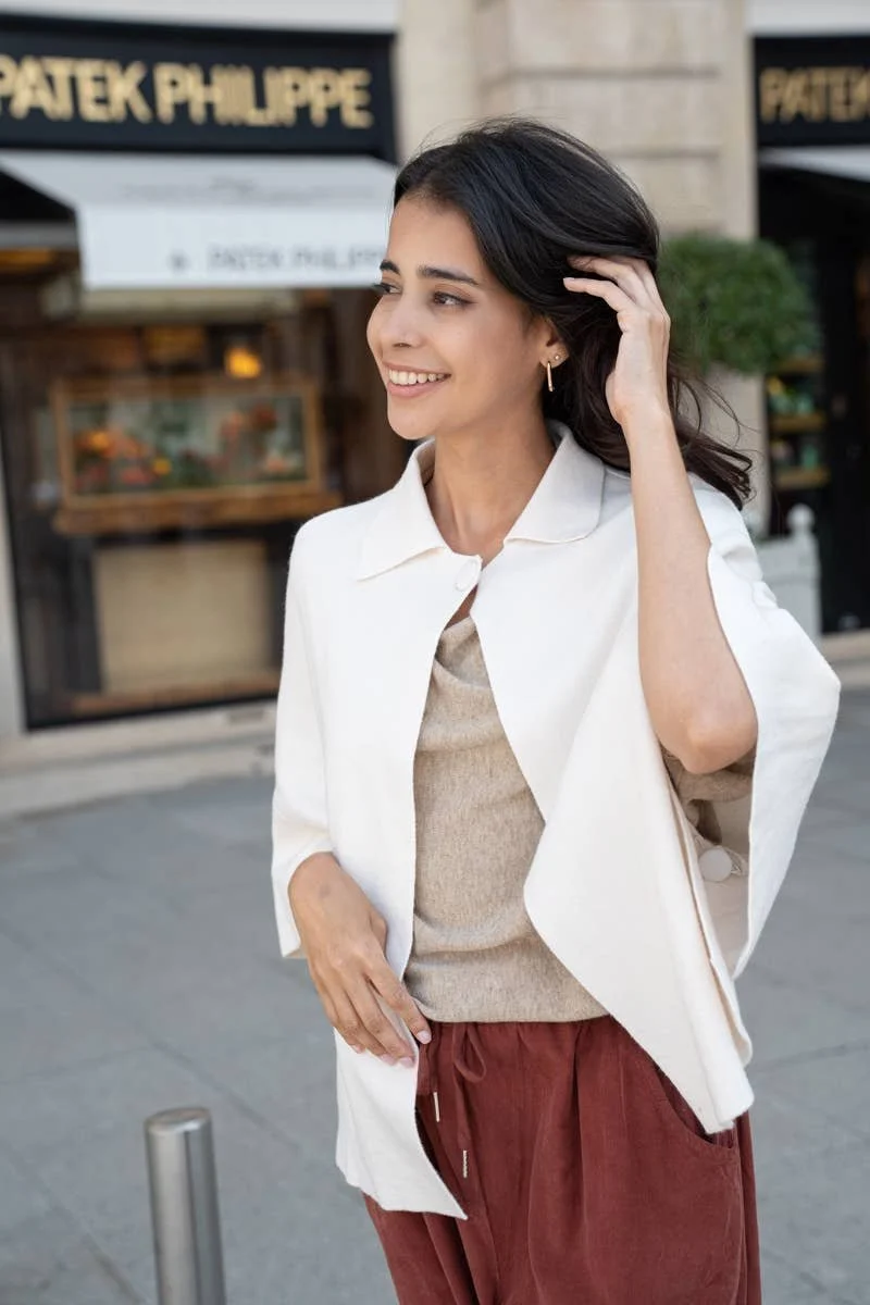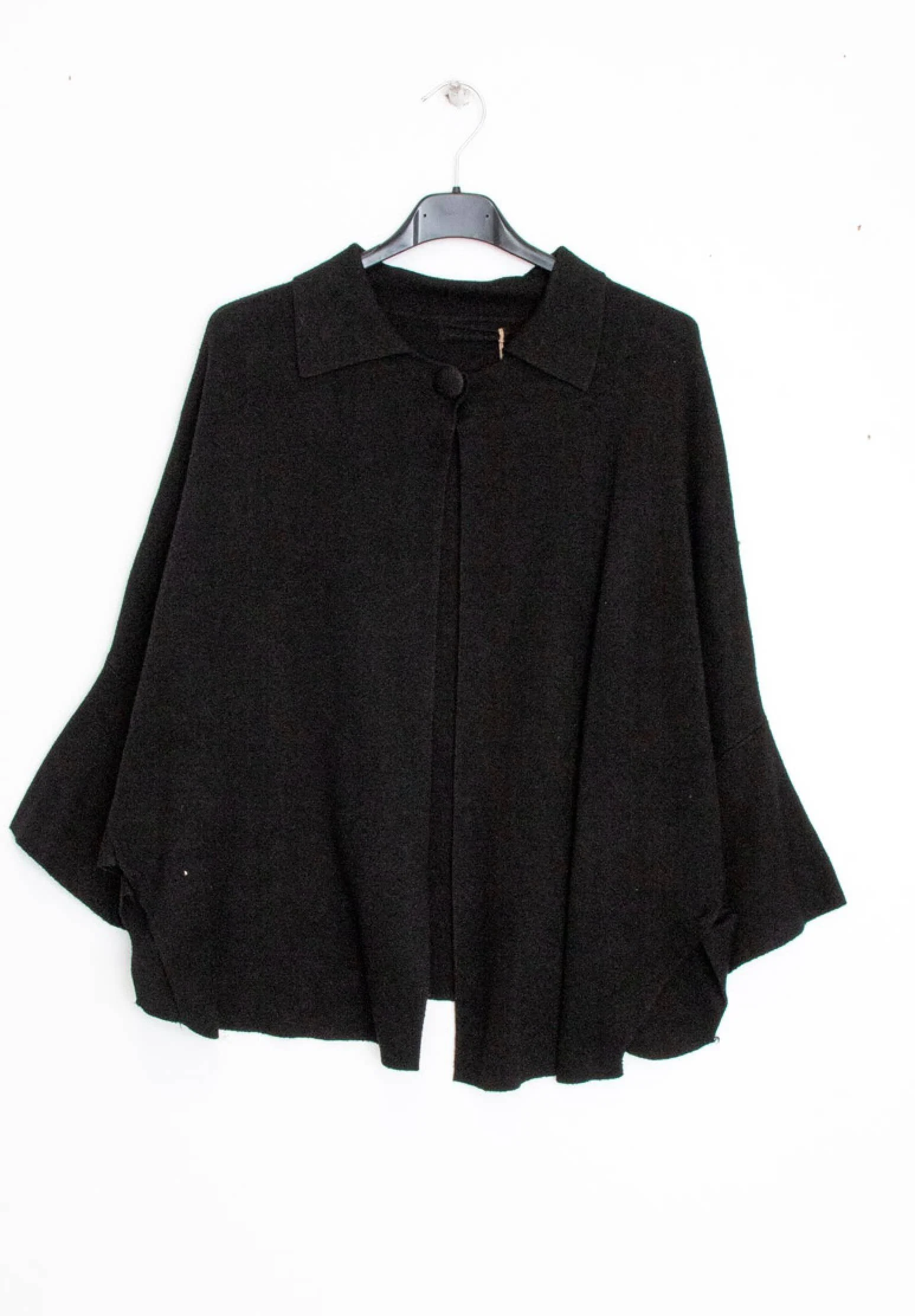 All Items › Cape-style knitted: Black, One size Image 1 of 5 Image 2 of 5 Image 3 of 5 Image 4 of 5 Image 5 of 5 Cape-style knitted: Black, One size $70.00 sold out Cape-style knitted vest with button on the collar, large 3/4 sleeves and side opening. One size 38-44 (M-XXL) Get notified by email when this product is in stock. Sold Out Added! Cape-style knitted vest with button on the collar, large 3/4 sleeves and side opening. One size 38-44 (M-XXL)