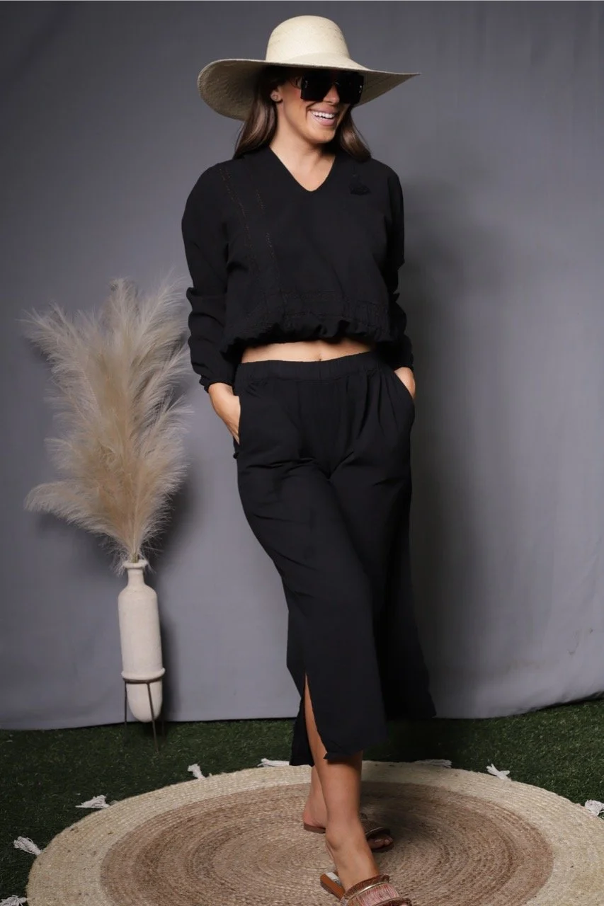 All Items › Capri w/slits- Black Image 1 of 1 Capri w/slits- Black $72.00 sold out Peruvian Cotton Capri w/slits- Black: XS Small Med Get notified by email when this product is in stock. Sold Out Added! Peruvian Cotton