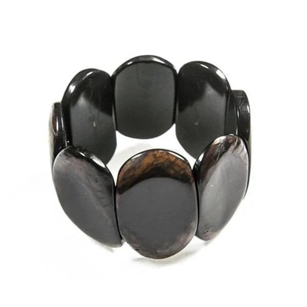This oval-shaped bracelet made from the tagua nut with leftover grain comes in playful and fun colors! Lightweight. Tagua slices. Vegetable dyes. Handmade in Ecuador. Due to the nature and size of the tagua nuts, all sizes are approximate, not exact. Dimensions: stretchable fits 7" - 7.5" wrists.