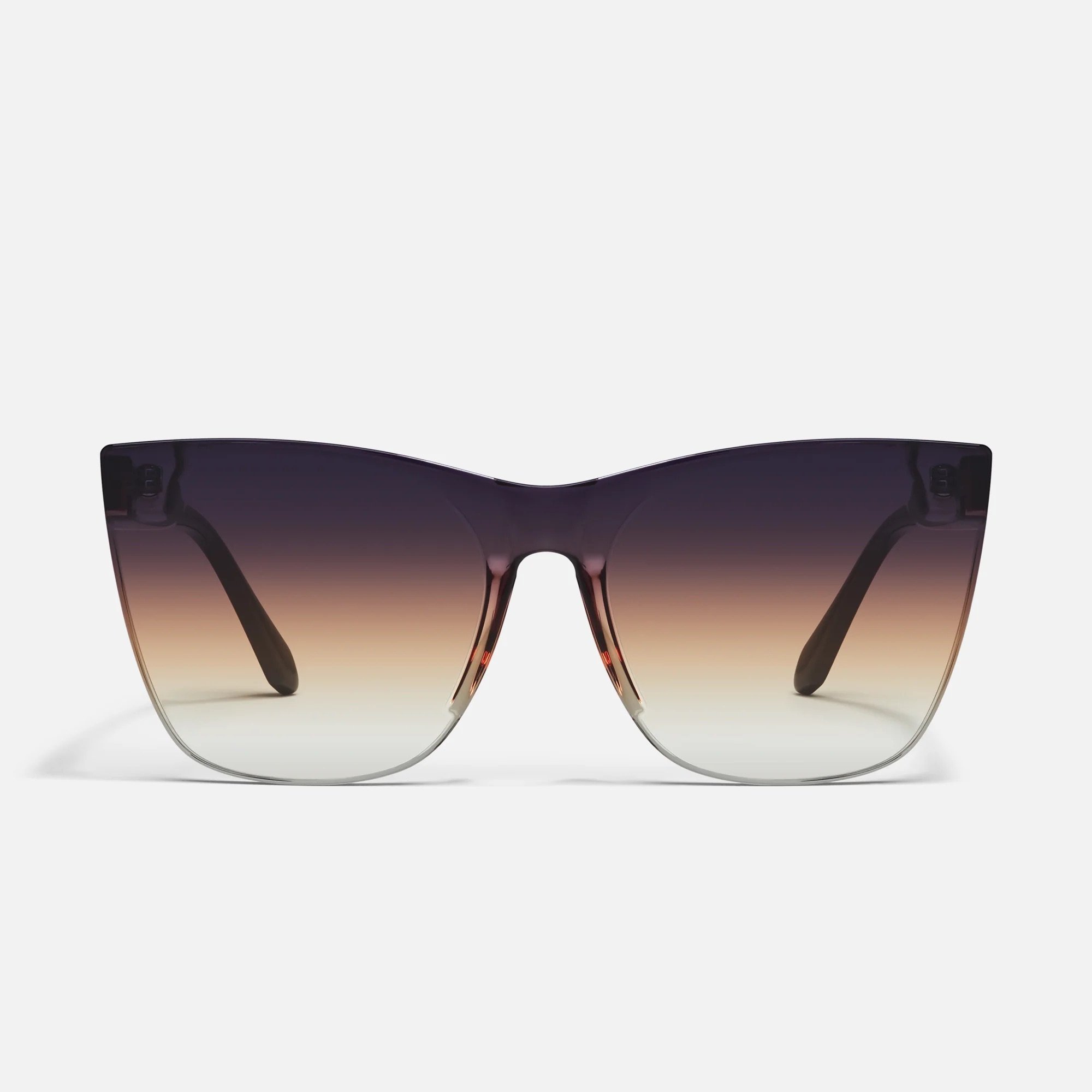 Serving face and frame in COME THRU. This oversized flush lens cat eye brings major standout energy. Frame: Cat eye shape Arms: Standard arms Details: One piece lens Nose Bridge Fit: Built in universal nose pads Case and cloth included. Bridge Width: 20 MM Arm Length: 144 MM Frame Width: 144 MM Lens Height: 57 MM