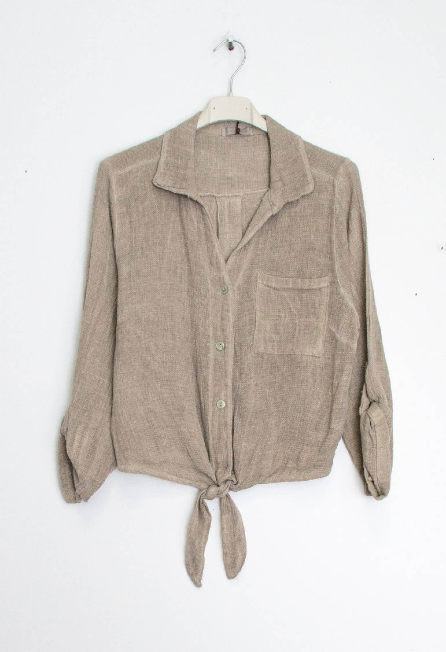 All Items › Cotton shirt : Taupe, One size Image 1 of 5 Image 2 of 5 Image 3 of 5 Image 4 of 5 Image 5 of 5 Cotton shirt : Taupe, One size $65.00 sold out Short cotton shirt with bow. One size 38-44 (M-XXL) Get notified by email when this product is in stock. Sold Out Added! Short cotton shirt with bow. One size 38-44 (M-XXL)