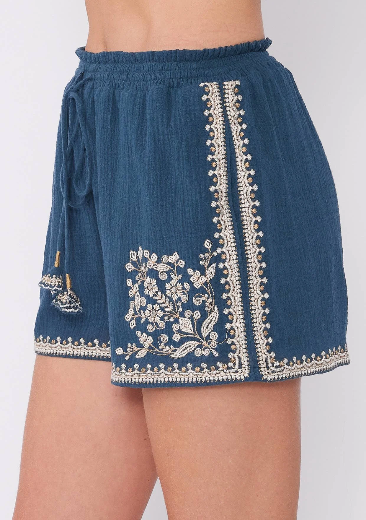 All Items › Cotton Smocked Embroidered Short: Natural/Taupe, L Image 1 of 5 Image 2 of 5 Image 3 of 5 Image 4 of 5 Image 5 of 5 Cotton Smocked Embroidered Short: Natural/Taupe, L $49.00 sold out Embroidered short with a smocked waistline, drawstring, and side pockets. Lining attached. Shop Matching Top: I-15075W-SFU Get notified by email when this product is in stock. Sold Out Added! Embroidered short with a smocked waistline, drawstring, and side pockets. Lining attached. Shop Matching Top: I-15075W-SFU