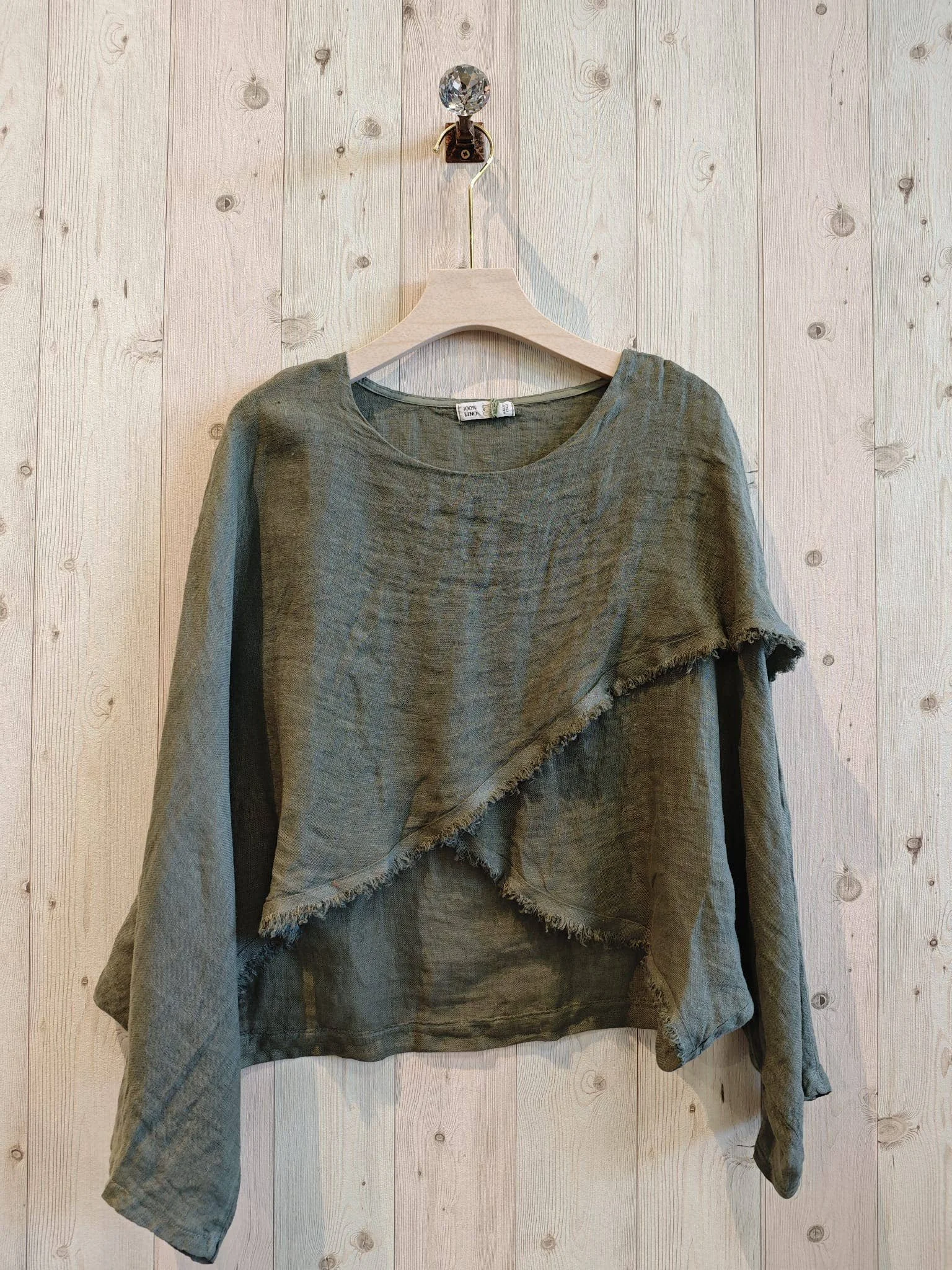 All Items › CROSSOVER BLOUSE 100% LINEN: BEIGE Image 1 of 3 Image 2 of 3 Image 3 of 3 CROSSOVER BLOUSE 100% LINEN: BEIGE $69.00 Limited Availability *PONCHO-STYLE WRAP BLOUSE*COMPOSITION 100% LINEN*LENGTH MEASUREMENTS APPROXIMATELY 50 to 56 CM Get notified by email when this product is in stock. Quantity: Add To Cart Added! *PONCHO-STYLE WRAP BLOUSE*COMPOSITION 100% LINEN*LENGTH MEASUREMENTS APPROXIMATELY 50 to 56 CM