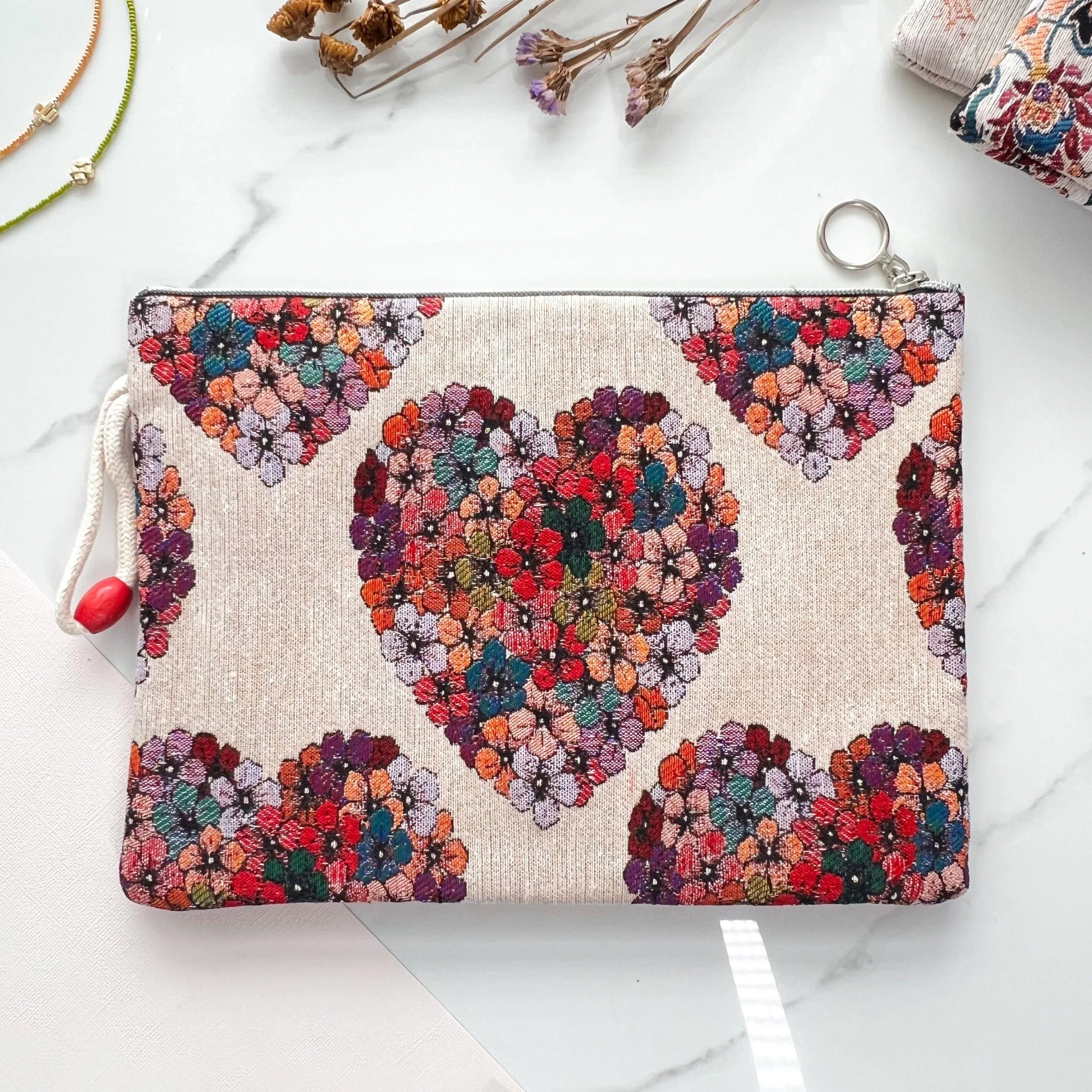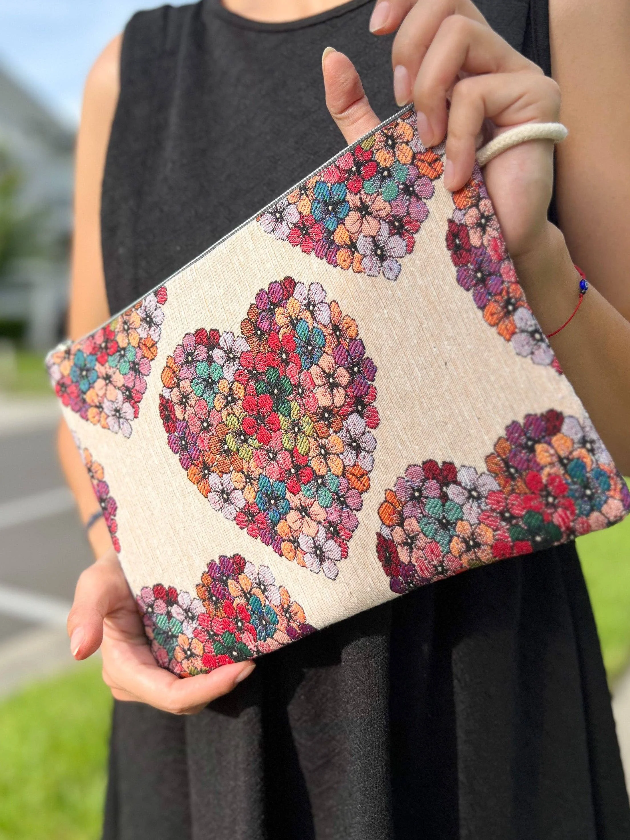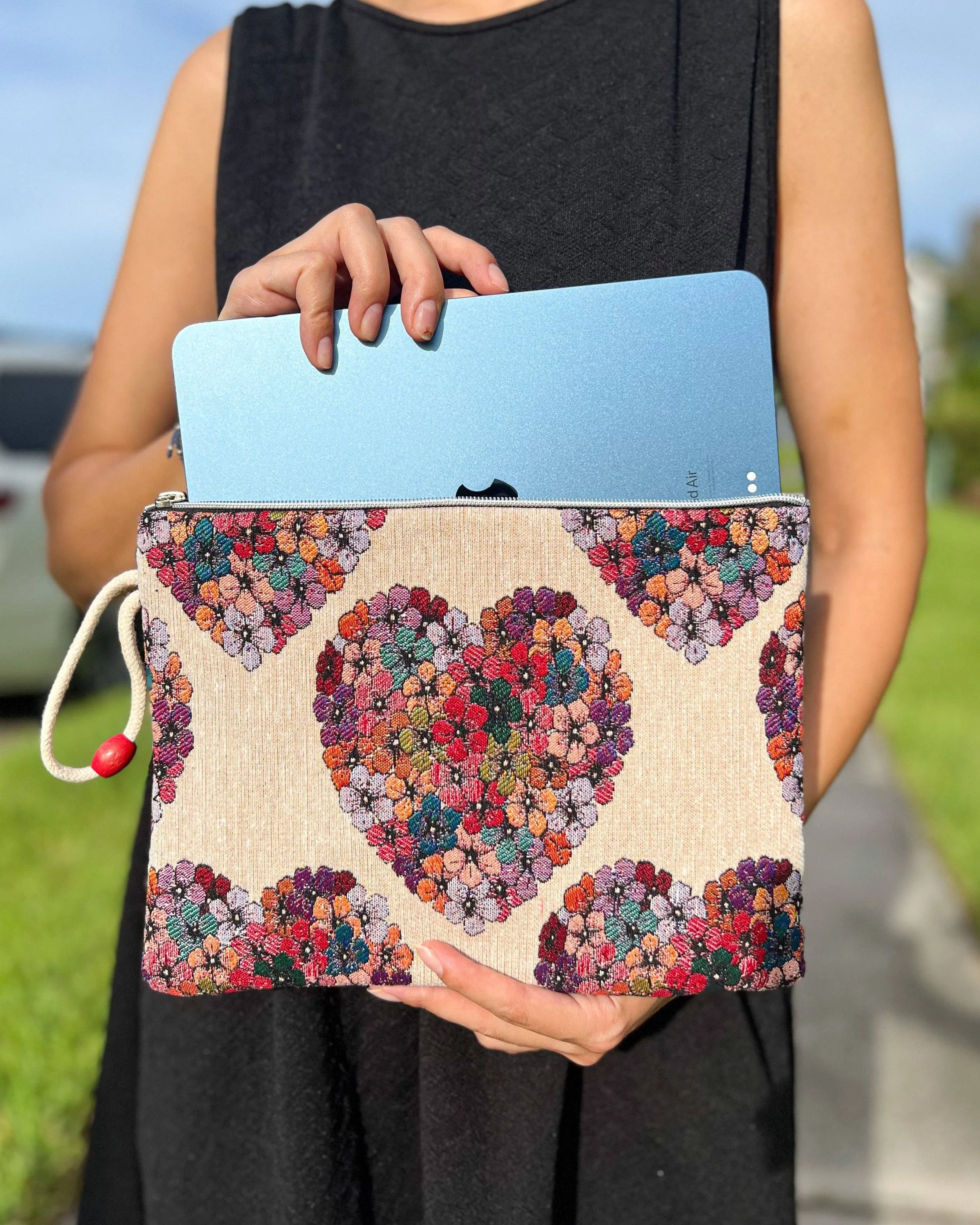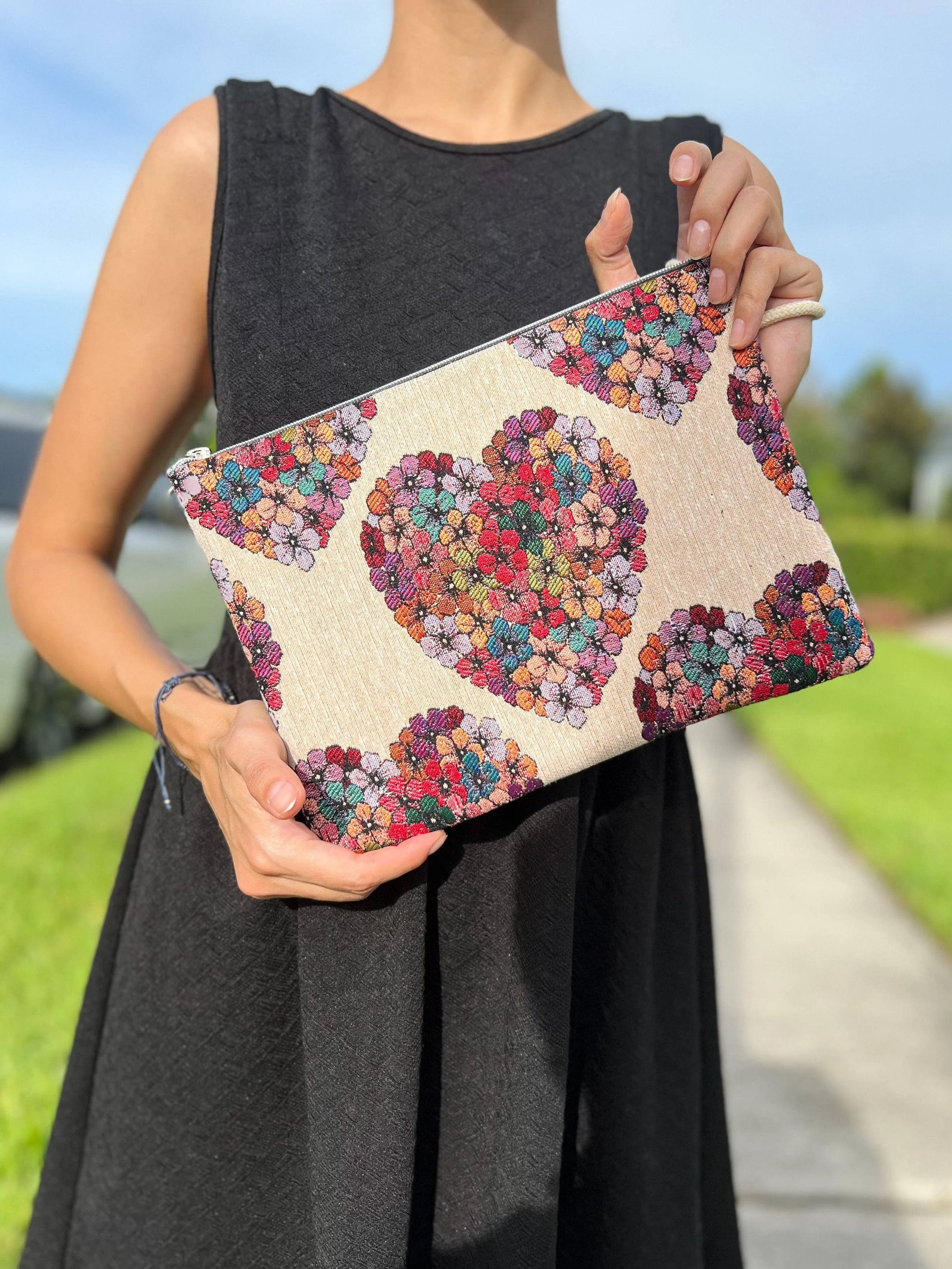 Our stylish and functional slim clutch for women, featuring captivating designs and thoughtful details. This versatile accessory is designed to complement your outfit while providing convenient storage for your essentials and even your iPad! With a sleek and slim profile, this clutch effortlessly fits into your hand or can be worn with the included wristlet for a hands-free option. The padded interior offers secure storage for your iPad and your cell phone, ensuring it stays protected from scratches and bumps while on the go. - Product Size 11'' x 8'' (28 cm x20 cm)