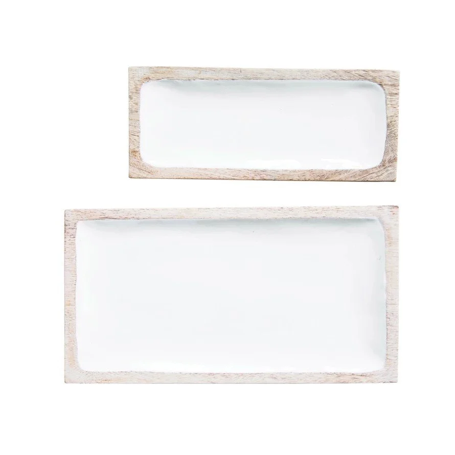 15"L x 8"W & 12"L x 5"W Enameled Mango Wood Trays, White, Set of 2 Style: Autumn