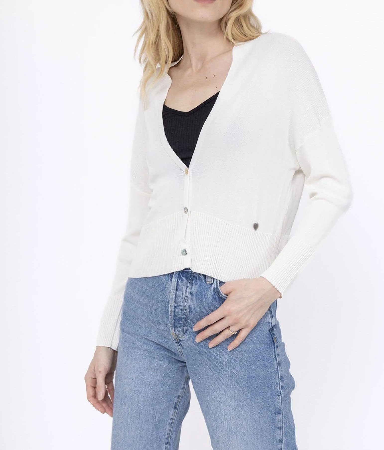 All Items › Fine knit cardigan : Ecru, One size Image 1 of 5 Image 2 of 5 Image 3 of 5 Image 4 of 5 Image 5 of 5 Fine knit cardigan : Ecru, One size $69.00 Limited Availability Short fine knit cardigan. One size 38-44 (M-XXL) Get notified by email when this product is in stock. Add To Cart Added! Short fine knit cardigan. One size 38-44 (M-XXL)