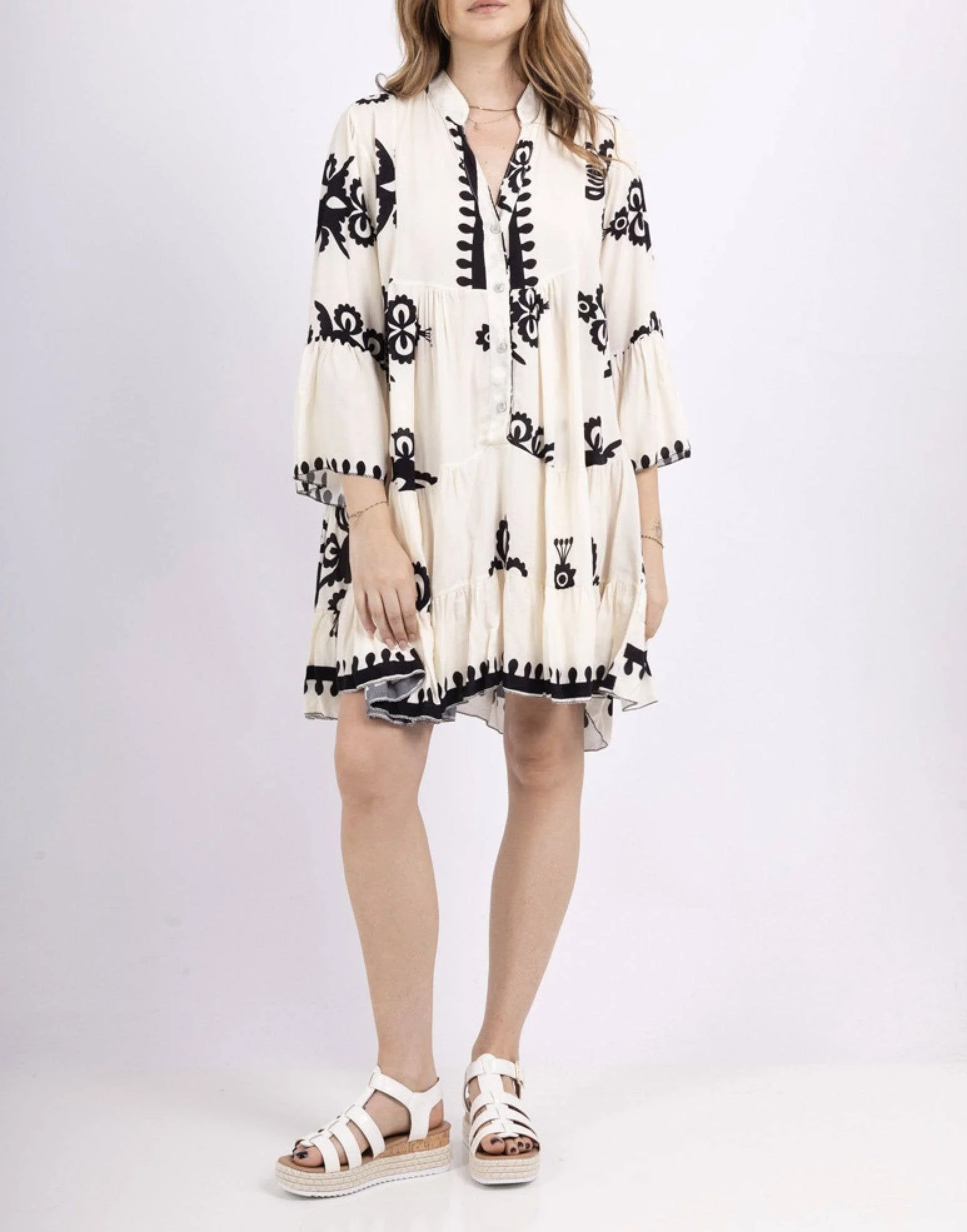 All Items › Floral printed mini dress: Ecru, One size Image 1 of 5 Image 2 of 5 Image 3 of 5 Image 4 of 5 Image 5 of 5 Floral printed mini dress: Ecru, One size $74.00 sold out Floral printed mini dress with mandarin collar and 3/4 ruffle sleeves. One size 38-44 (M-XXL) Get notified by email when this product is in stock. Sold Out Added! Floral printed mini dress with mandarin collar and 3/4 ruffle sleeves. One size 38-44 (M-XXL)