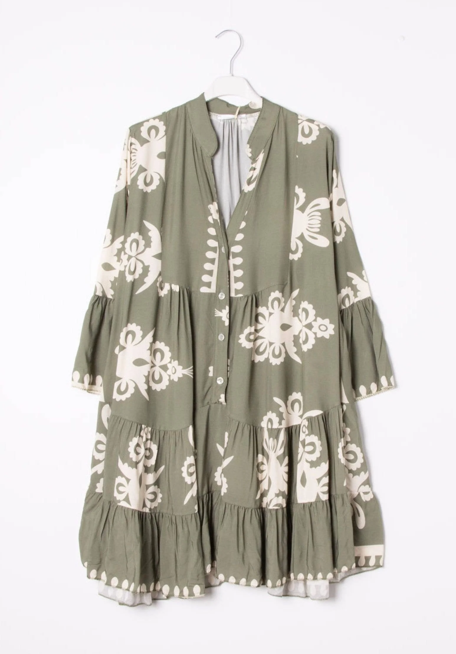 All Items › Floral printed mini dress: Khaki, One size Image 1 of 5 Image 2 of 5 Image 3 of 5 Image 4 of 5 Image 5 of 5 Floral printed mini dress: Khaki, One size $74.00 sold out Floral printed mini dress with mandarin collar and 3/4 ruffle sleeves. One size 38-44 (M-XXL) Get notified by email when this product is in stock. Sold Out Added! Floral printed mini dress with mandarin collar and 3/4 ruffle sleeves. One size 38-44 (M-XXL)