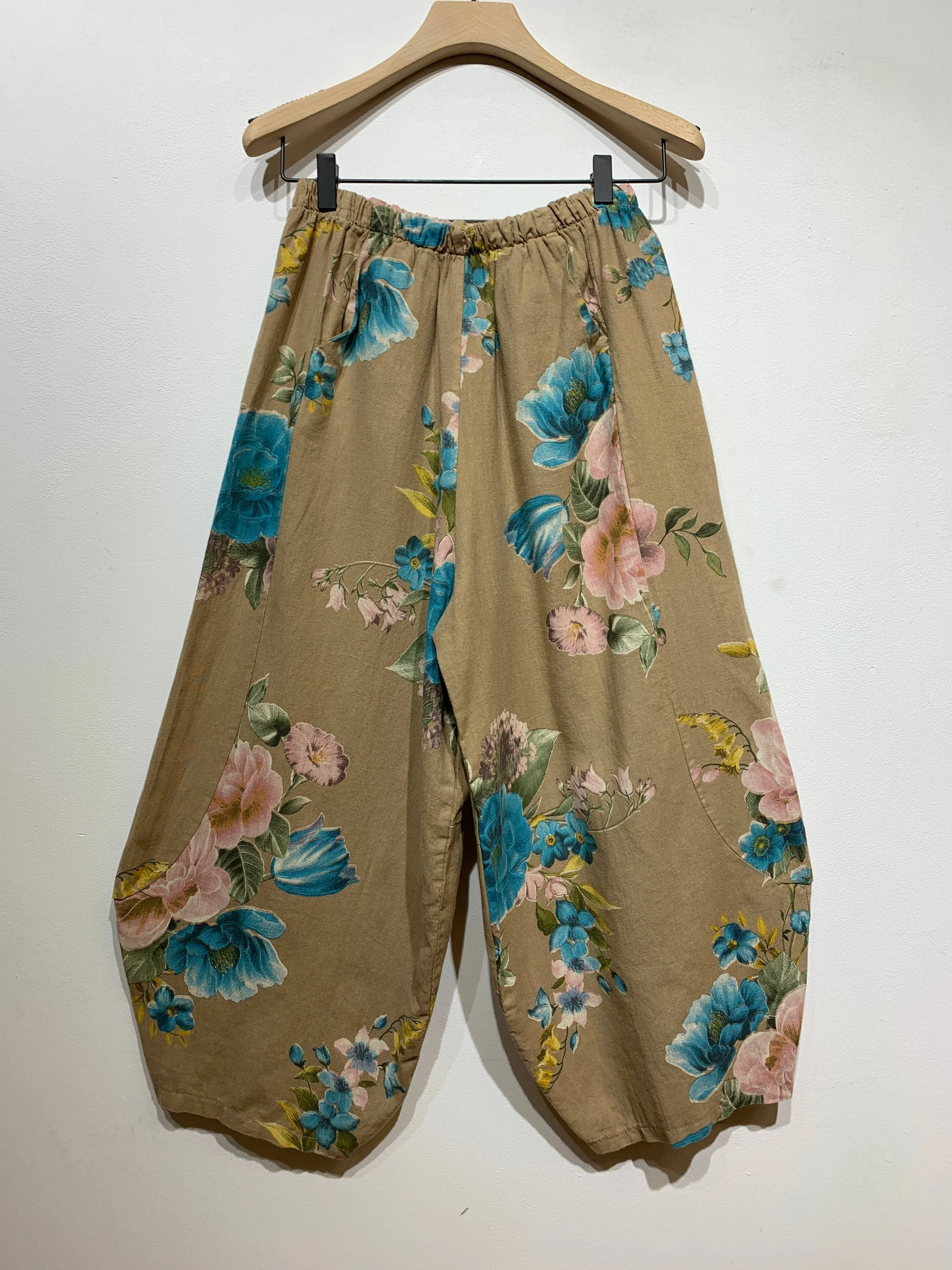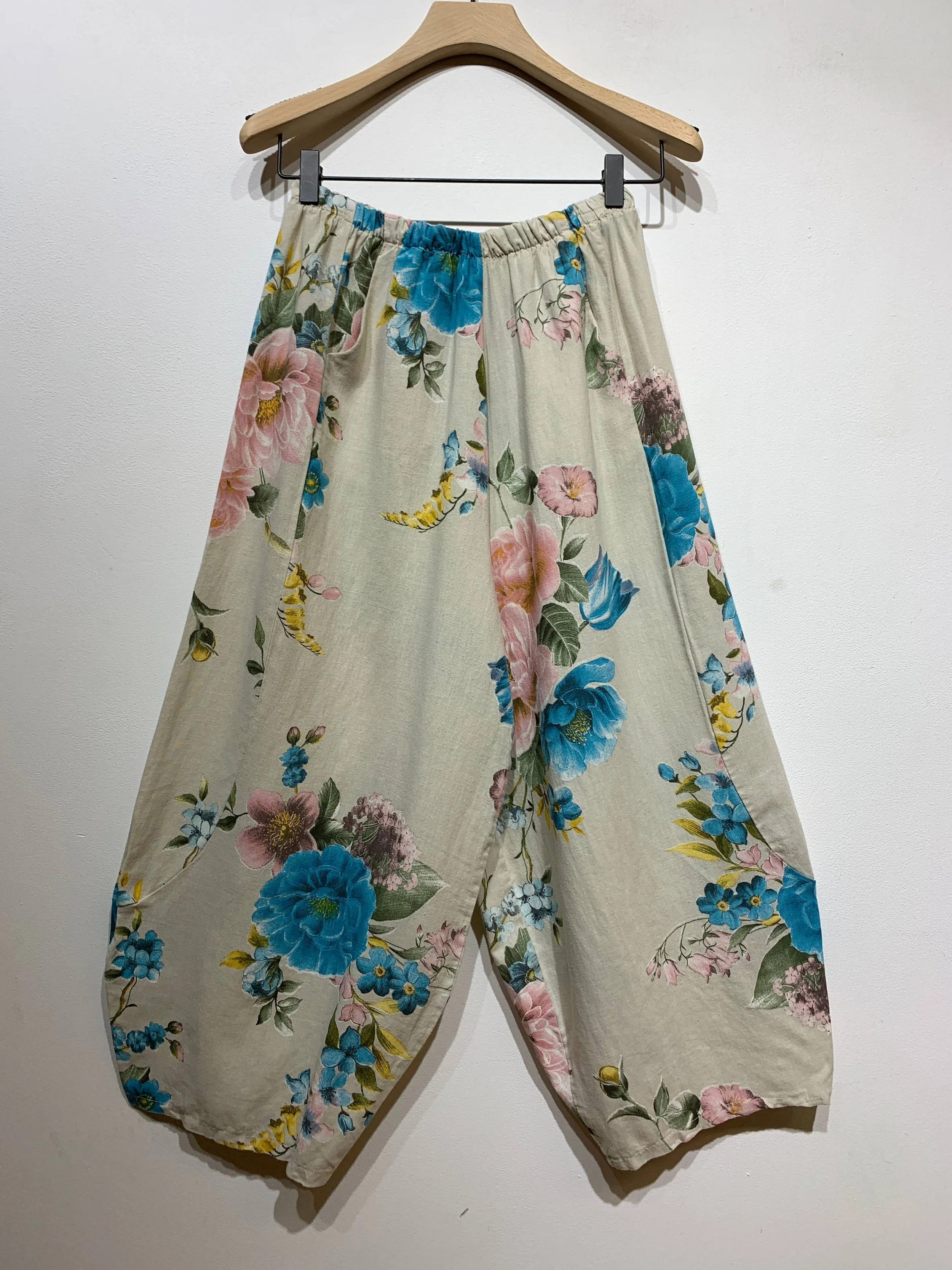 FLOWERS 100% LINEN TROUSERS: Beige