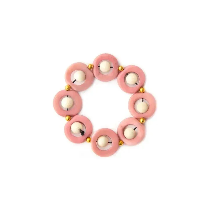 This bracelet is beaming with beauty! Specially handmade by artisans with tagua circles and accented with acai berries and gold beads. Pair with our Frida Earrings and Necklace to complete the look. Stretchable: Fits 7"-7.5" wrists Materials: Sustainable Tagua nut, Acai Berries Organic Vegetable Dyes Handmade in Ecuador Due to the nature and size of the tagua nuts, all sizes are approximate…not exact. Colors may vary from the pictures slightly due to the nature of the Tagua Nut.
