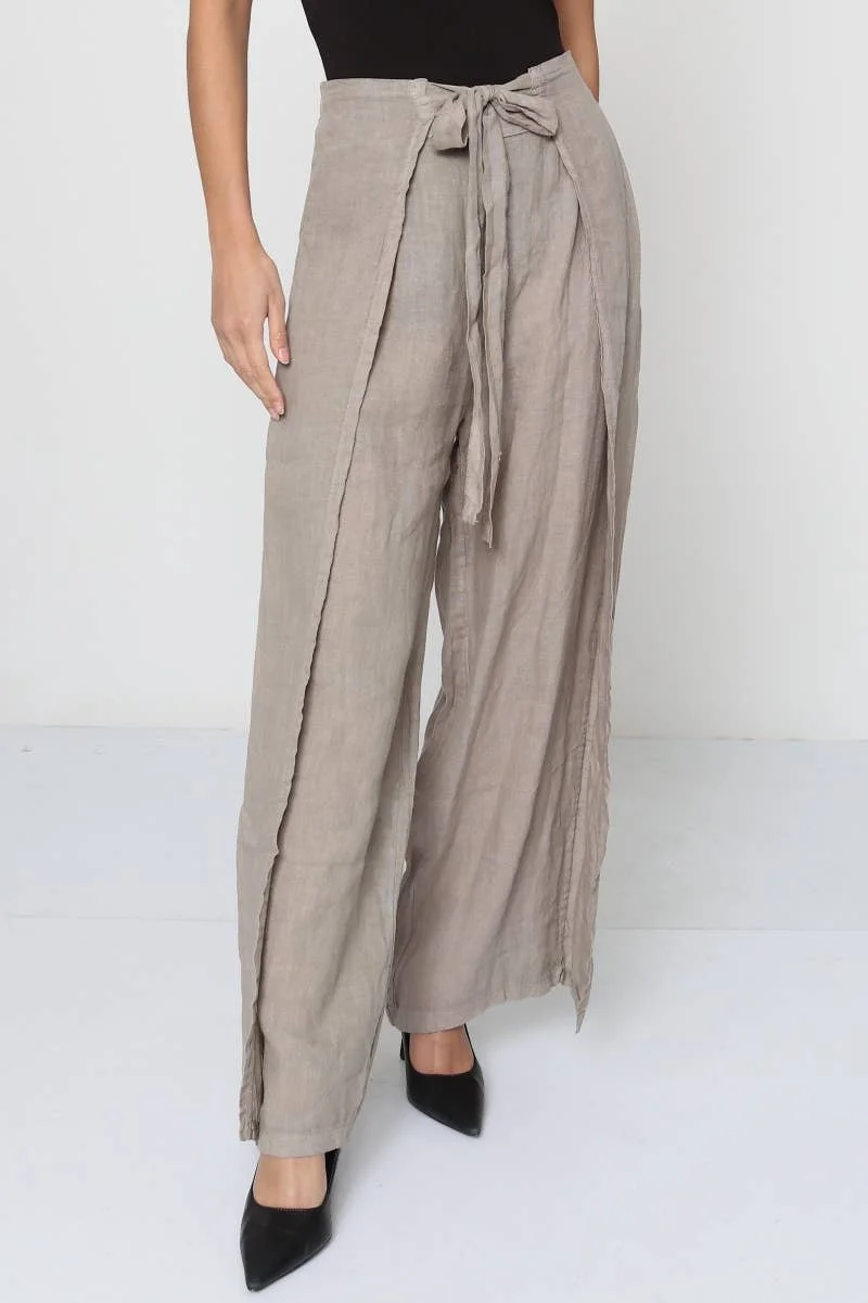 All Items › Front Tie Linen Pants: CG Image 1 of 5 Image 2 of 5 Image 3 of 5 Image 4 of 5 Image 5 of 5 Front Tie Linen Pants: CG $78.00 sold out Linen Wide-Leg Pants front tie Get notified by email when this product is in stock. Sold Out Added! Linen Wide-Leg Pants front tie