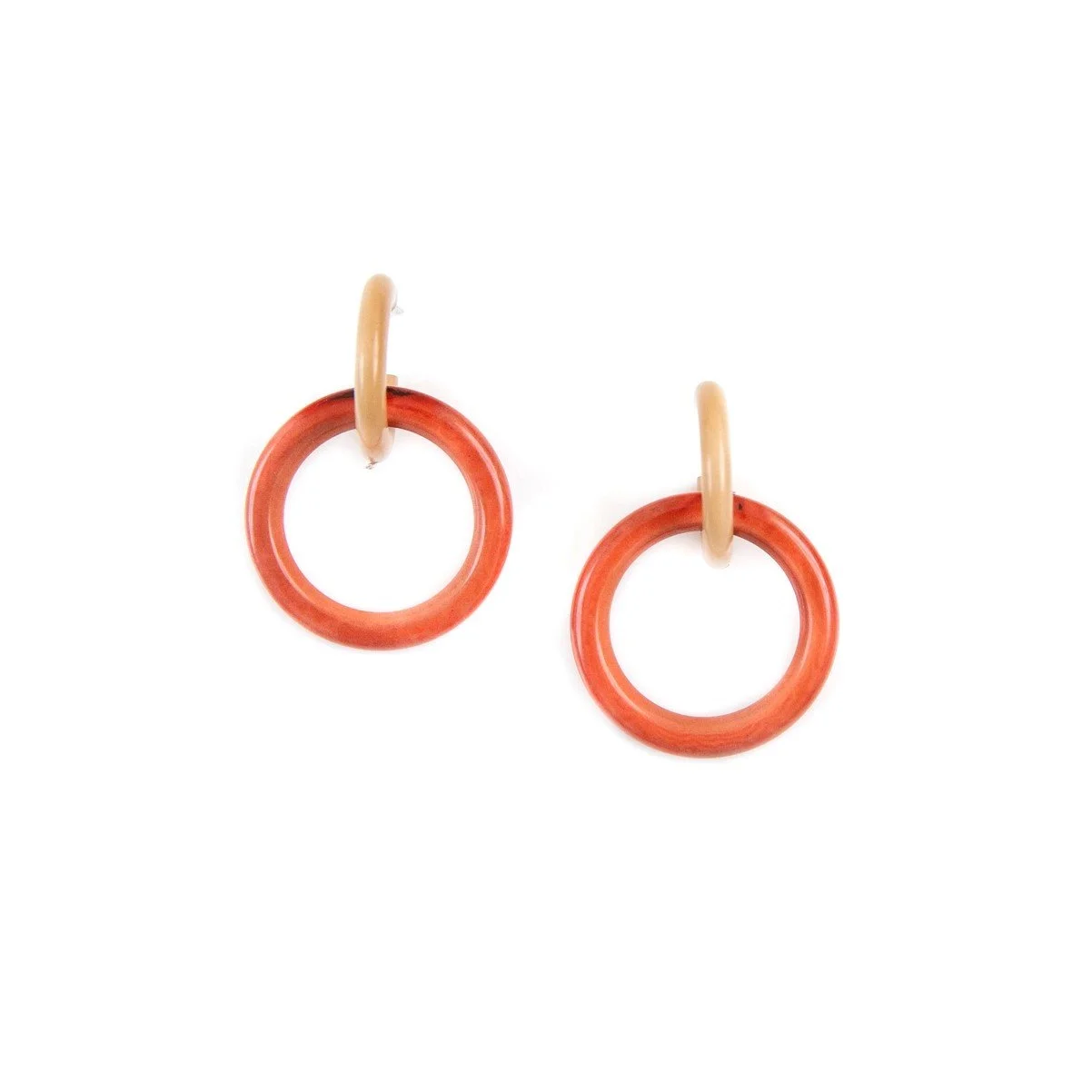 Beautifully hand-carved eco-friendly tagua circle earrings on a post design. Approximately 1.8" L Materials: Sustainable Tagua nut Ear wires are hypoallergenic, nickel free, and lead free Organic Vegetable Dyes Handmade in Ecuador Due to the nature and size of the tagua nuts, all sizes are approximate…not exact.