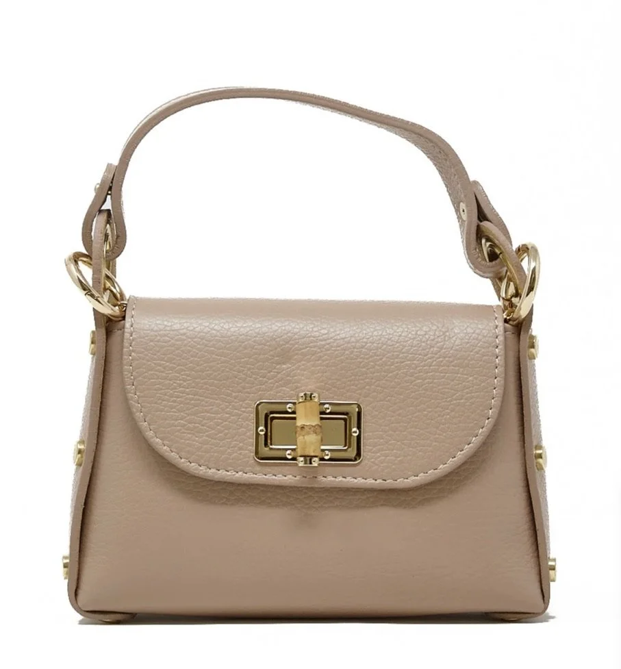 GENUINE ITALIAN LEATHER BAMBOO CLASP, CROSSBODY BAG